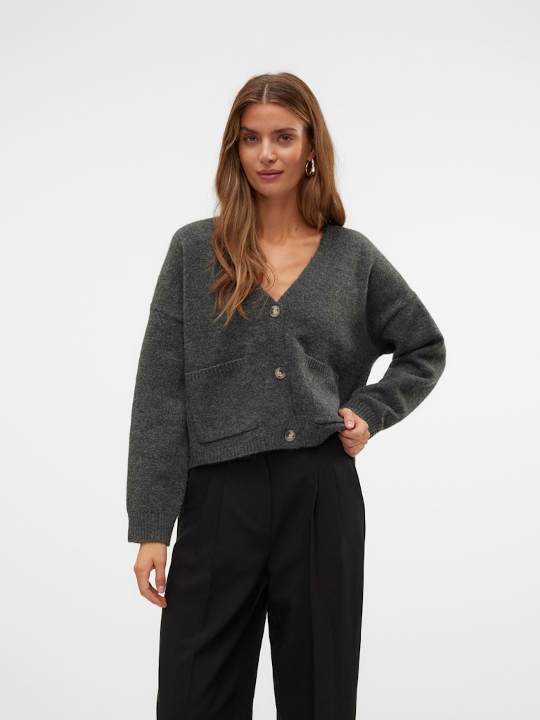 Brug den som et sødt ekstra lag eller en chik strikket jakke. Denne tunge strikkede cardigan er den perfekte tilføjelse til din garderobe. Den er en nem og behagelig stil, der holder dig behagelig og varm. Brug den som et ekstra lag til dit allerede smarte outfit, eller skru lidt ned for dit fine look ved at føje en smule komfort til det. - Produkttype : Cardigan - Hals : V-hals - Ærme : Lange ærmer - Ærmer : Sænkede skuldersømme - Manchetter : Manchetter i rib - Lukning : Knaplukning - Lommer : Forlommer - Pasform : Regular fit