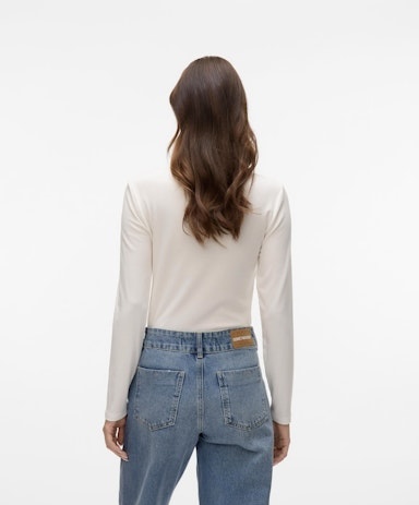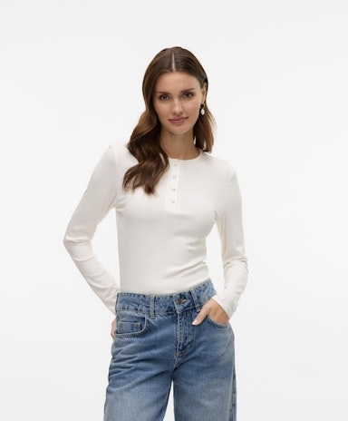AWZADIE LS O-NECK TOP SNOW WHITE er et ideelt valg for dig, der ønsker en enkel, anvendelig og stilfuld basisstyle, som kan bruges sæson efter sæson og let tilpasses forskellige outfits, behov og situationer i hverdagen.