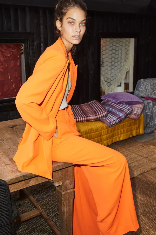 Stilfulde bukser i fantastisk flot orange farve. Fremstillet i 100% polyester.