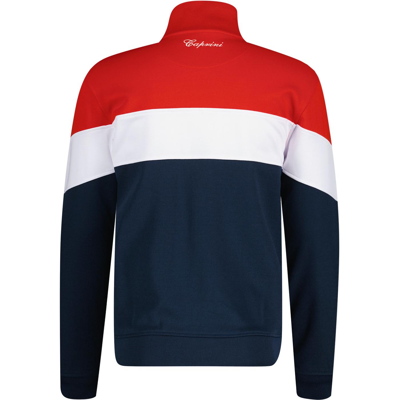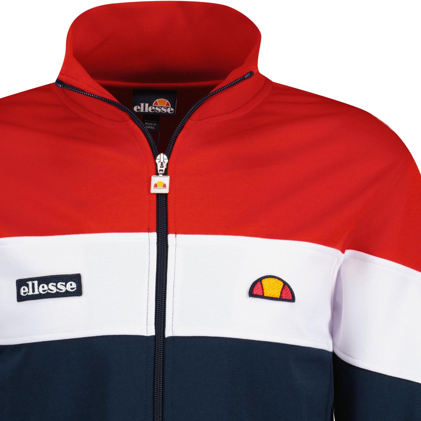 Super flot zip trøje fra Ellesse i lækker kraftig kvalitet og retro look. Med lynlås, to sidelommer og ribkant ved ærmer og bund. Farve : Red/Navy/White. Fremstillet i 50% bomuld, 50% polyester.