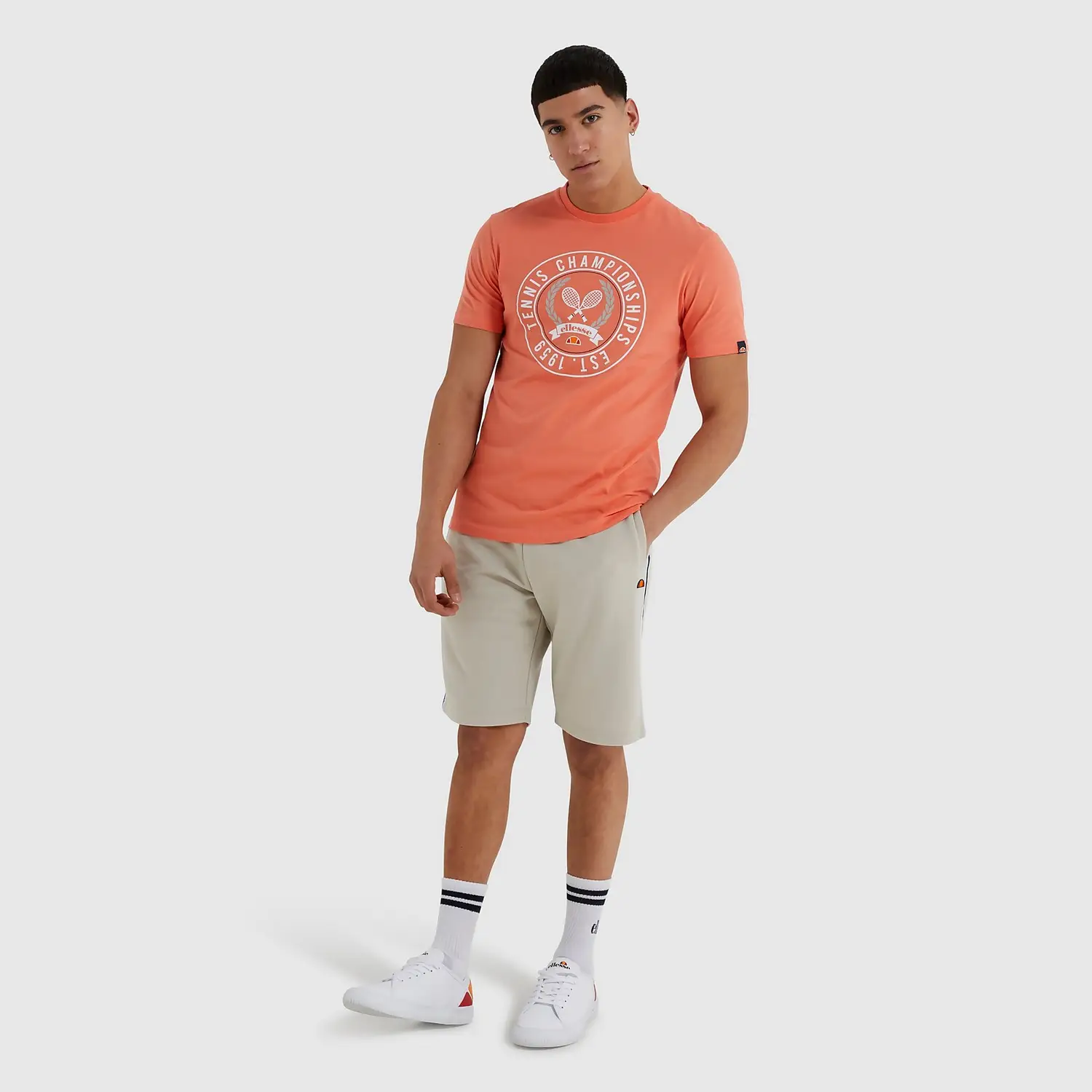 Stilfulde og komfortable shorts fra Ellesse. Med stribede paneler ned langs siderne, to sidelommer samt broderet logo. Farve : Light Grey. Fremstillet i 50% bomuld, 50% polyester.