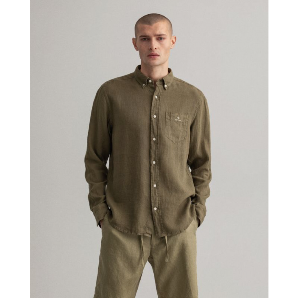 Super lækker hørskjorte fra Gant. Fremstillet i garment-dyed hør som giver en flot farve og en dejlig blød fornemmelse. Regular fit. Farve : Dark Leaf. Fremstillet i 100% hør.