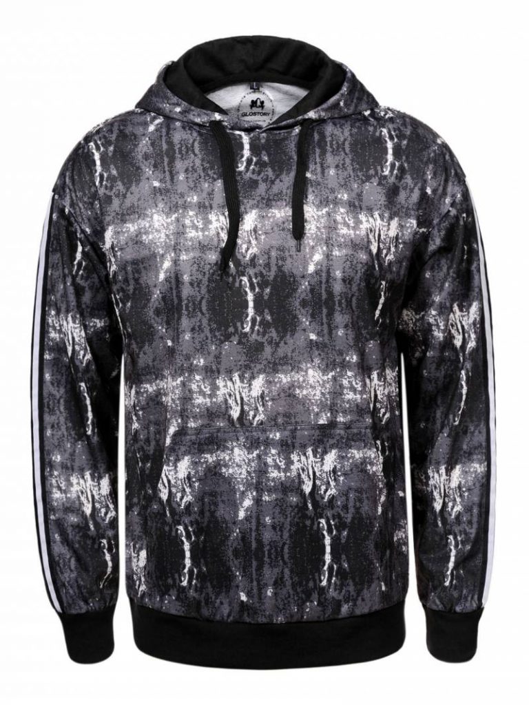 Super trendy hætte trøje med snøre i halsen og lomme foran.