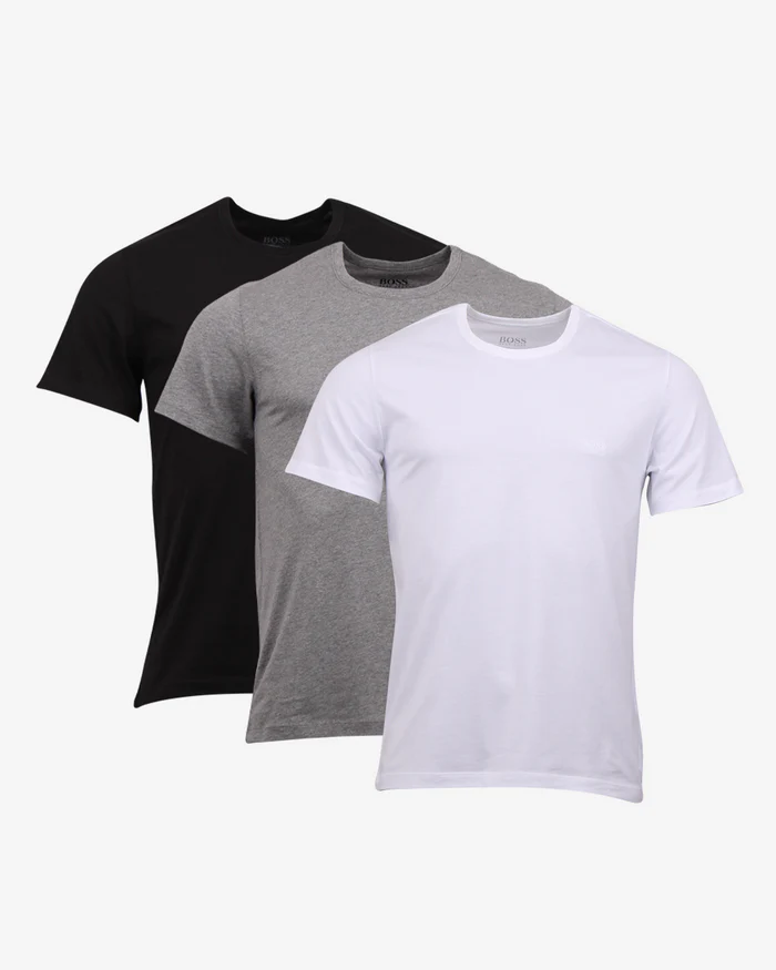 Super populær og stilfuld 3 pak t-shirt fra Hugo Boss. I dejlig blød jersey kvalitet, med rund hals samt logo broderet på brystet. Regular fit med perfekt pasform. Farve : White/Grey/Black. Fremstillet i 100% bomuld.