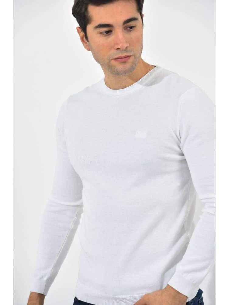Super lækker rundhalset pullover fra Hugo Boss i dejlig blød kvalitet. Med logo broderet på brystet. Farve : White. Fremstillet i 100% bomuld.
