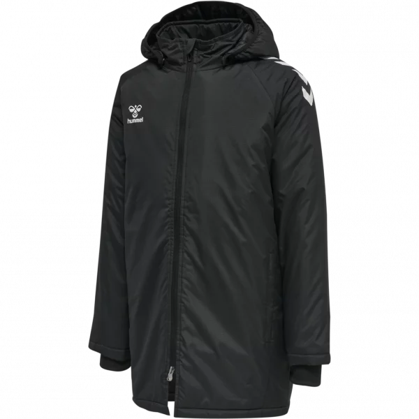 Denne hummel jakke med lynlås er uundværlig i aktive børns garderobe til koldt vejr. hmlCORE XK BENCH JACKET KIDS er fremstillet af polyestervævet stof og er både holdbar og praktisk. Lynlåsgaragen foroven forhindrer lynlåsen i at glide ned, så familiens mindste altid har det lunt og godt. Denne egenskab er kombineret med stormmanchetter, der indkapsler varmen i jakken. Quiltet vattering gør dette ekstra lag virkelig behageligt. For ekstra flair har denne jakke en aftagelig hætte samt printet logo og vinkler.