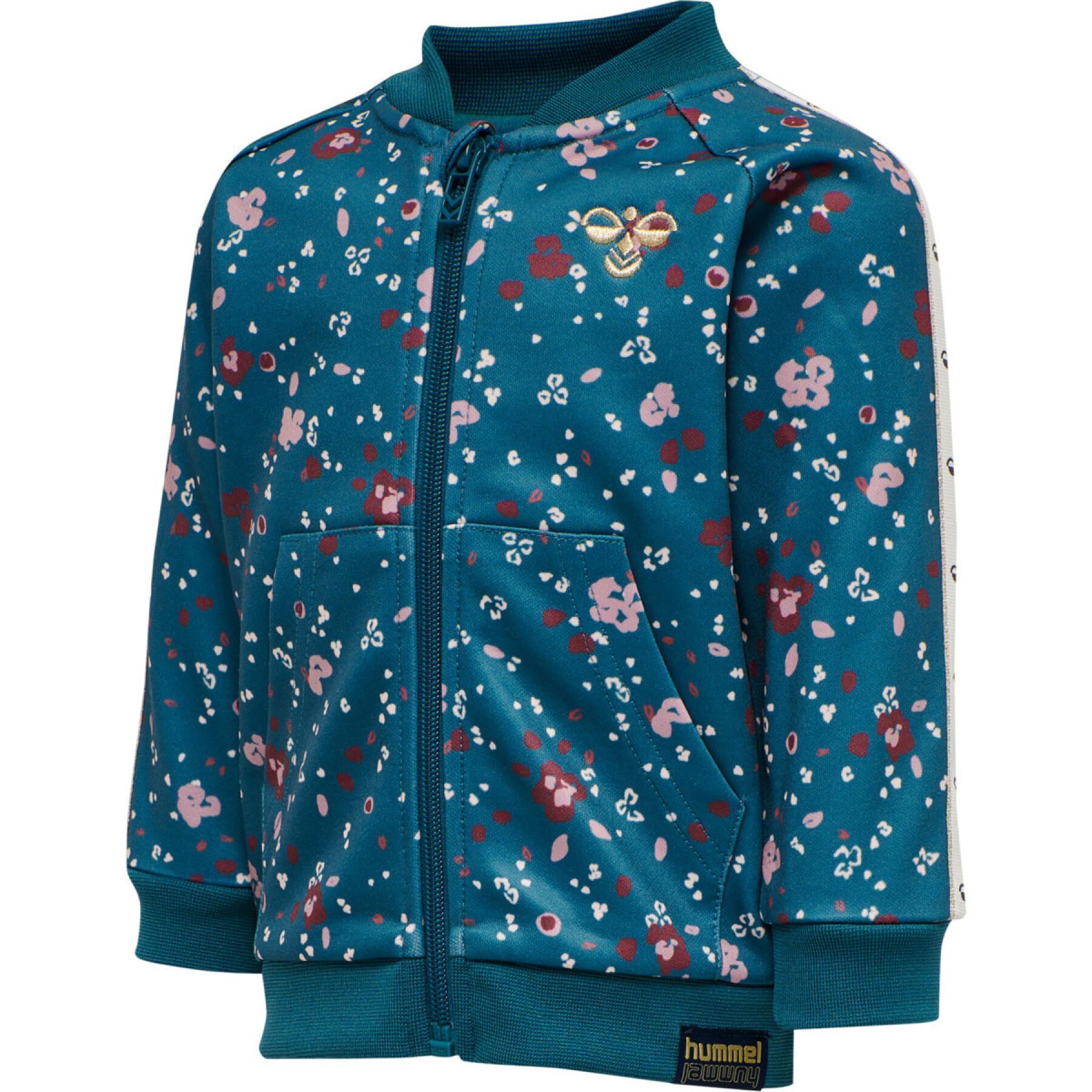 Fin zip trøje fra Hummel, med små søde blomstermotiver. Logo foran samt på ærmerne. Farve : Blue Coral. Fremstillet i 50% bomuld, 50% polyester.
