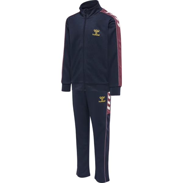 Lækkert Hummel træningssæt bestående af en højhalset trøje med lynlås hele vejen ned og matchende bukser. Interlockstoffet er blødt og giver en smule glans. Ribkanter på ærmer og forneden hjælper dit barn med at holde varmen og være godt tilpas, og pasformen kan nemt tilpasses med buksernes justerbare talje. Farve : Bordeaux. Fremstillet i 100 % polyester.