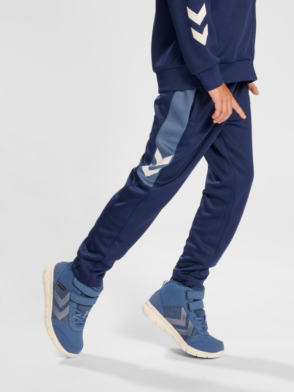 Smarte træningsbukser fra Hummel, lavet i super komfortabelt interlock stof. Med logo fortil samt vinkler på siderne. Farve : Iris. Fremstillet i 100% polyester.
