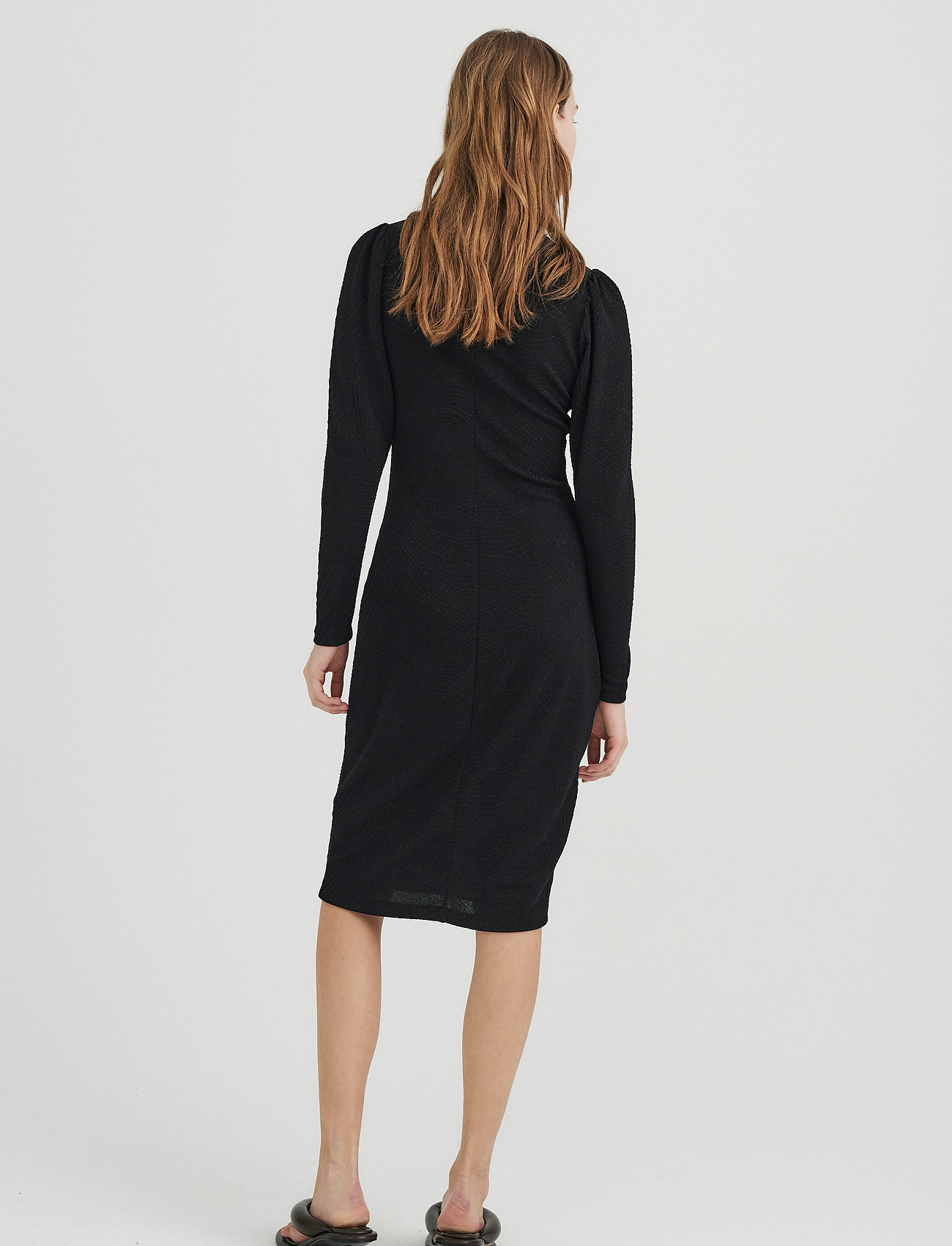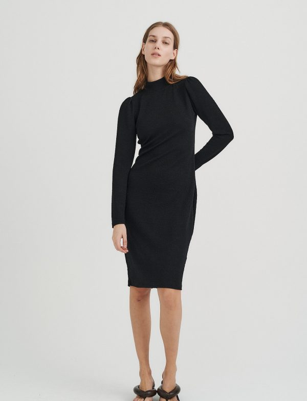 Utrolig flot tætsiddende kjole fra Inwear. Farve : Black. Fremstillet i 65% polyamid, 30% metallic, 5% elastan.