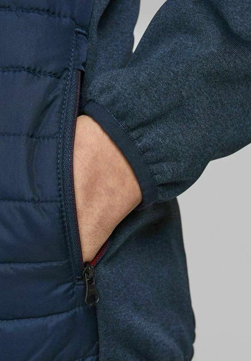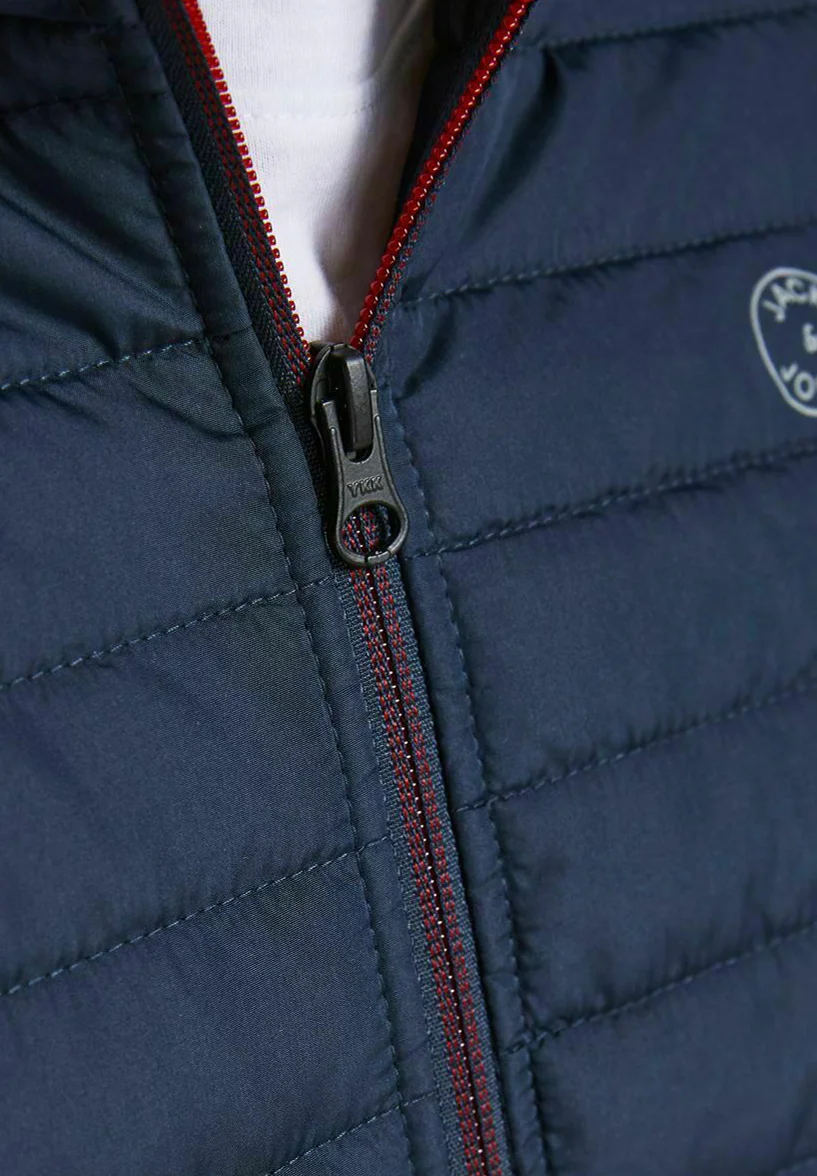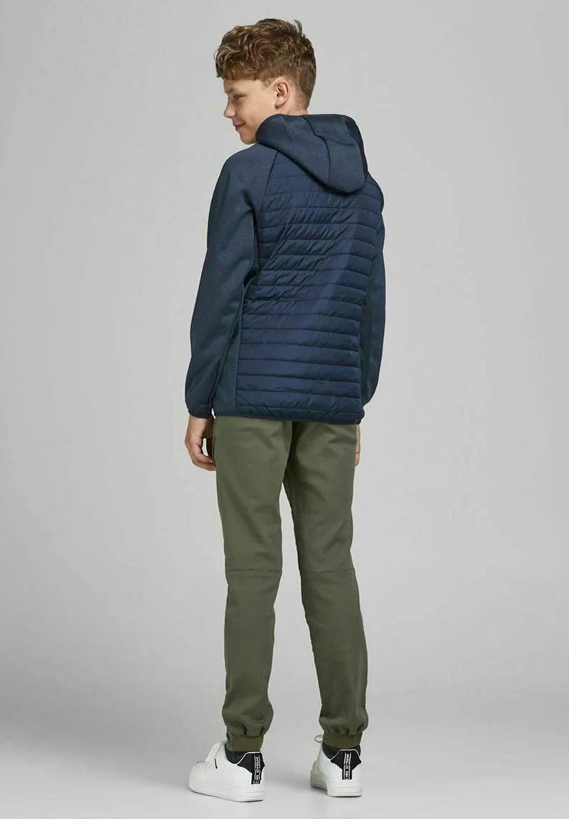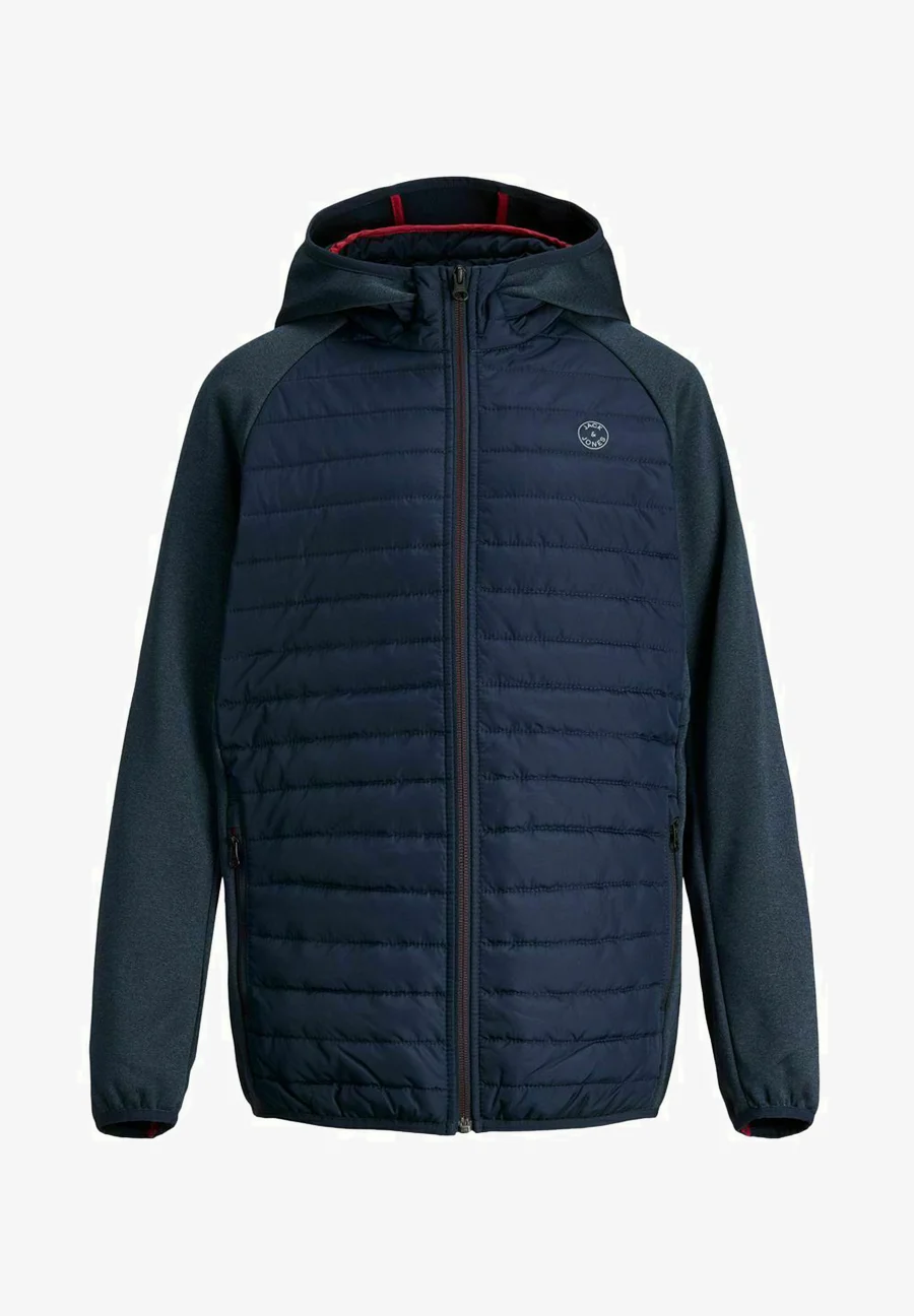 Populær let jakke til de unge drenge fra Jack & Jones. Med hætte og lynlås lommer fortil. Farve : Navy Blazer. Fremstillet i 100% polyester.