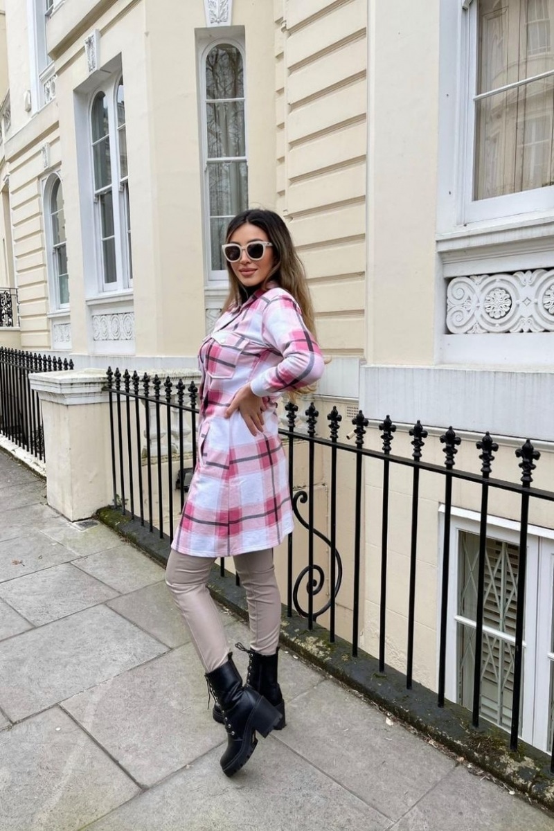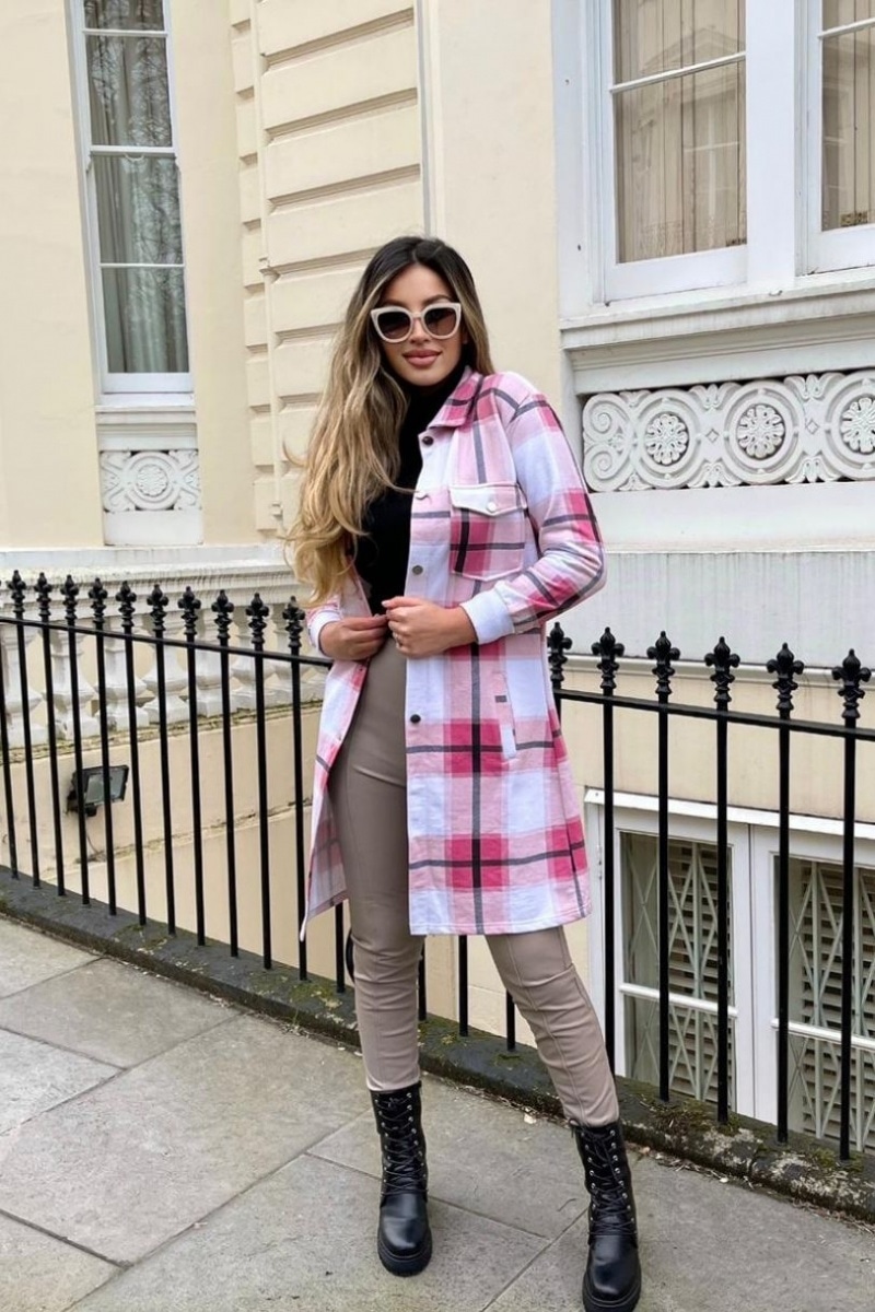 Trendy halv lang skjortejakke med tern.
