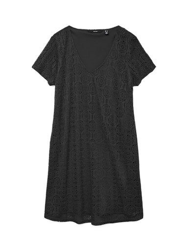 Denne dame kjole med V-hals er et oplagt valg for enhver kvinde, der ønsker en kombination af funktionalitet, komfort og moderne design. Den er nem at style, behagelig at bære og kan hurtigt blive en fast favorit i garderoben, sæson efter sæson. Den tidløse V-hals, korte ærmer og regular fit gør den til et sikkert valg, når du vil have en kjole, der altid fungerer.