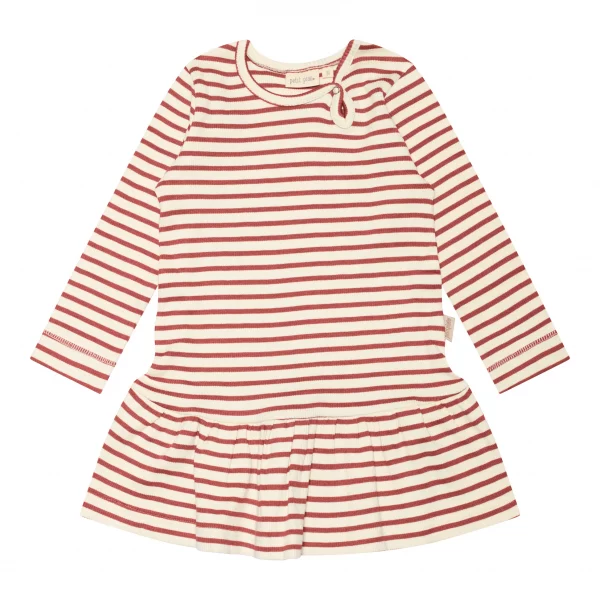 Skøn Petit Piao kjole i en stribet ribkvalitet i cremehvid og bronze.