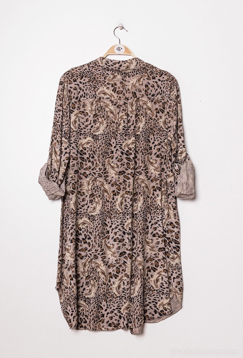 Smart lang skjorte med fint print. Farve : Taupe. Fremstillet i 95% bomuld, 5% elastan.