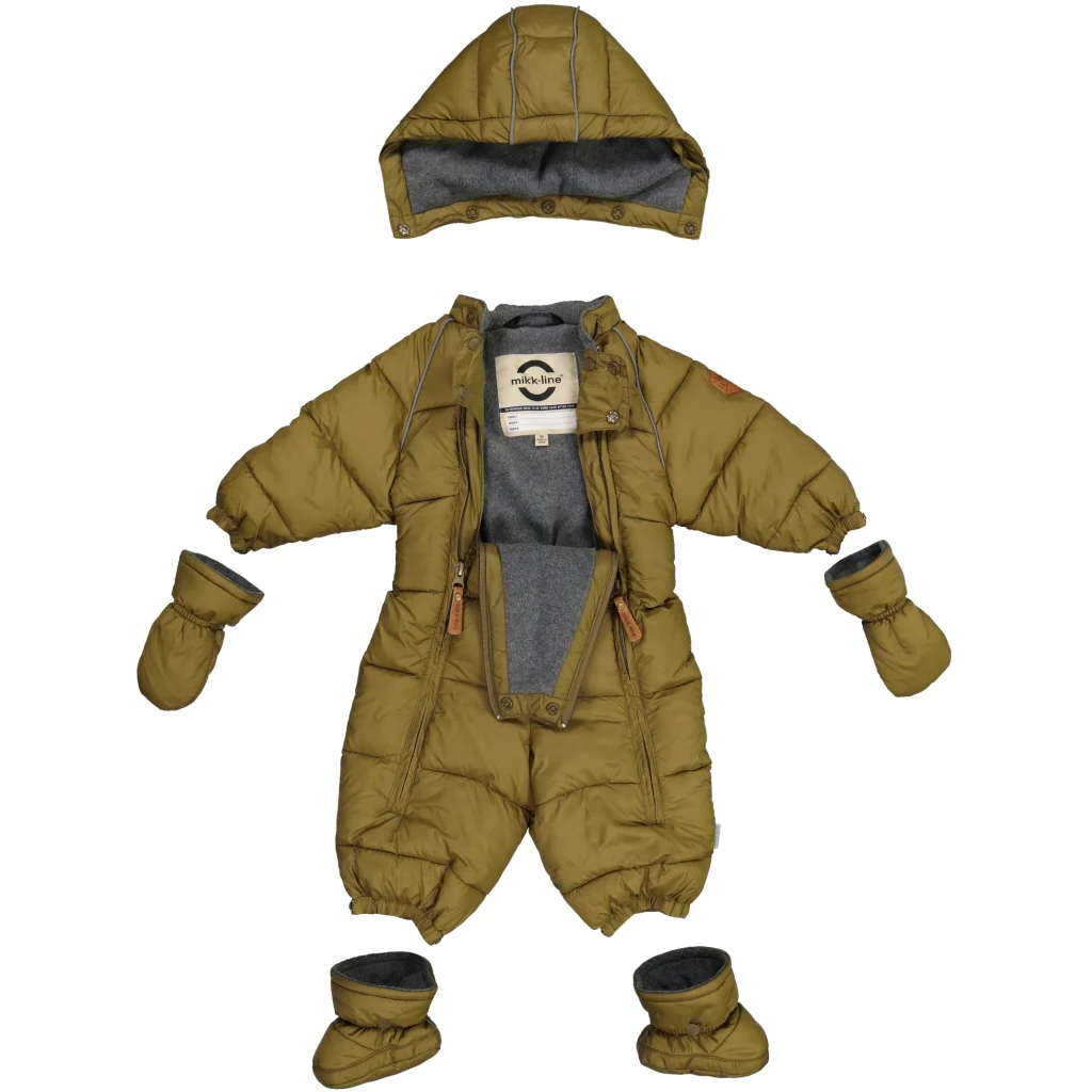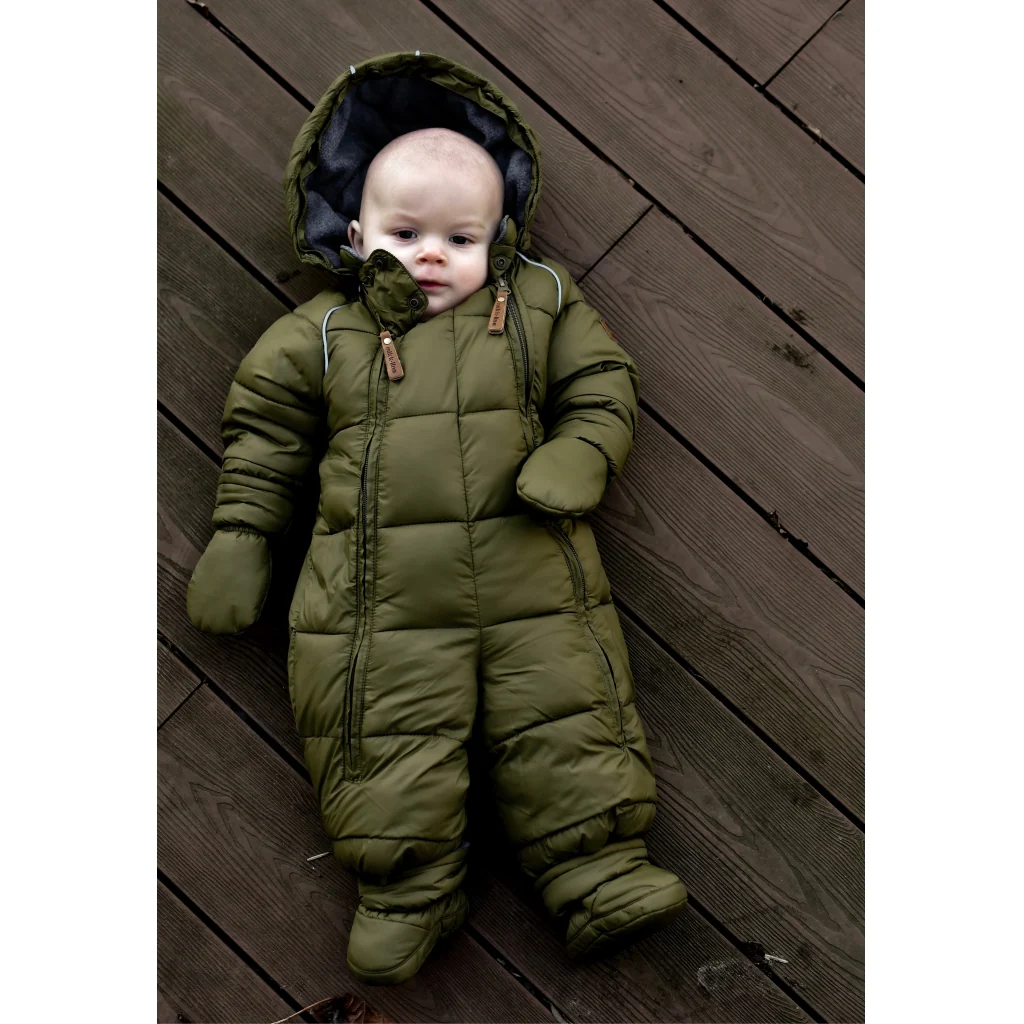 Mikk-line Baby Puffer Dragt til baby. Denne ultrabløde vinterdragt er en let, lun og isolerende dragt, der vil omfavne og varme det lille barn på tur i barnevognen, klapvognen, bæreselen eller autostolen på de kolde efterårs- og vinterdage.