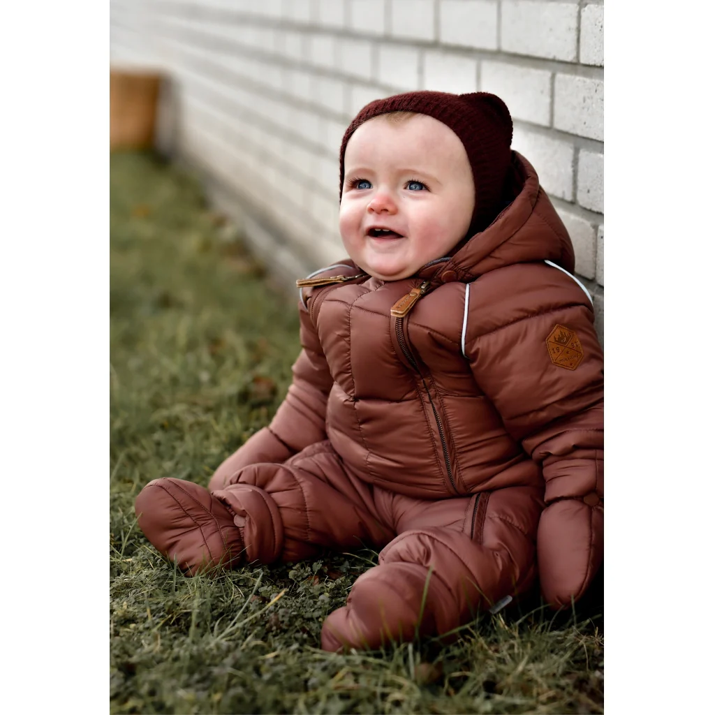 Mikk-line Baby Puffer Dragt til baby. Denne ultrabløde vinterdragt er en let, lun og isolerende dragt, der vil omfavne og varme det lille barn på tur i barnevognen, klapvognen, bæreselen eller autostolen på de kolde efterårs- og vinterdage.
