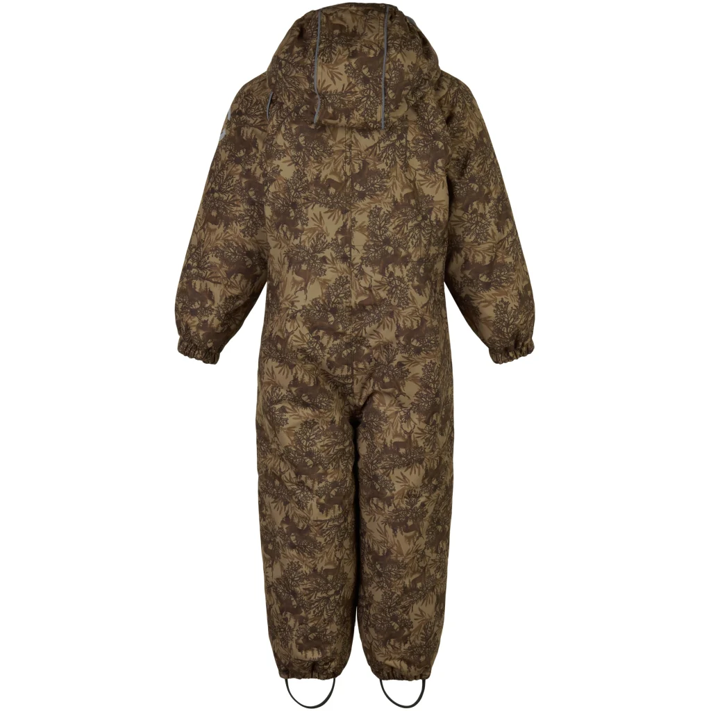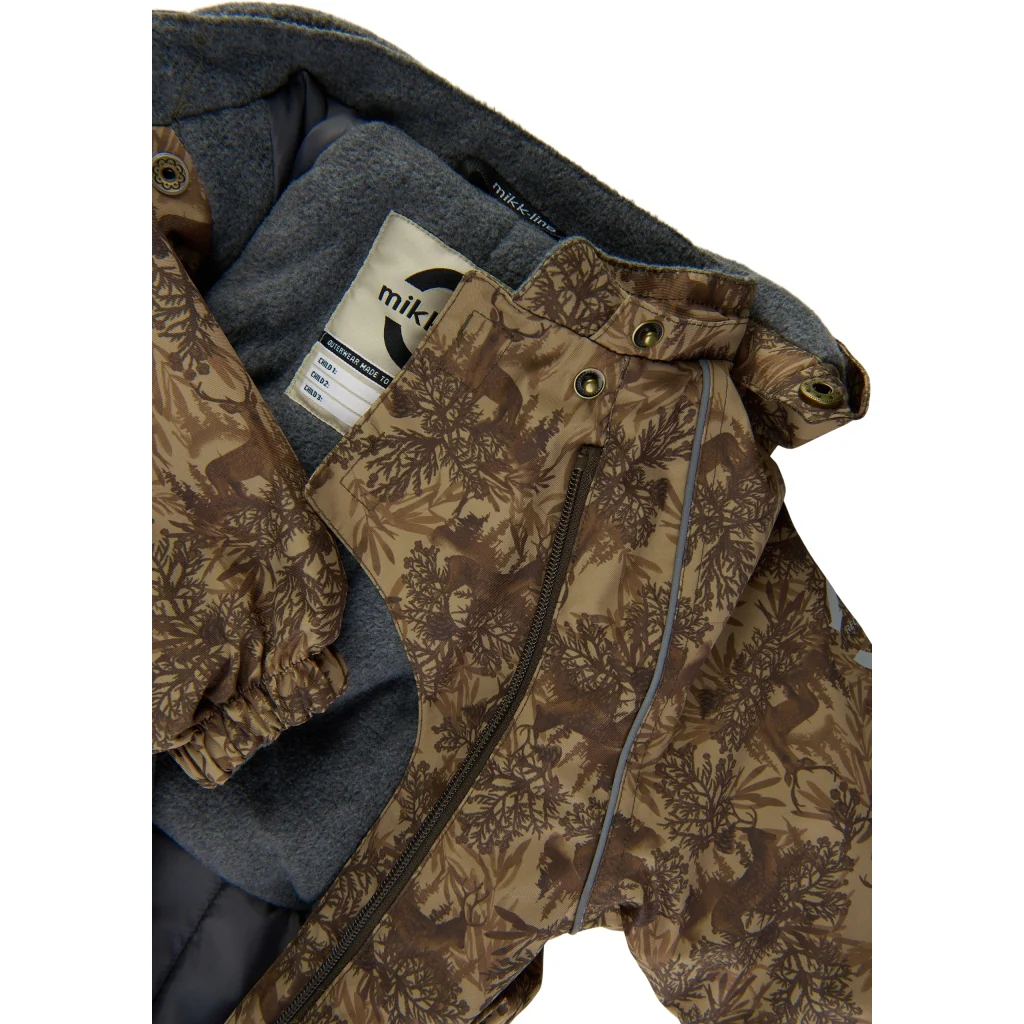 Mikk-line flyverdragt med et sejt print af vinterlandskab og skovens dyr. I denne lækre flyverdragt kan barnet lege og udforske naturen under den åbne himmel i alt slags vejr i løbet af de kolde og våde efterår- og vintermåneder. Flyverdragten er lavet af genanvendt polyester og polstret med polyesterfyld. Hætten og overkroppen har blødt fleece foer, hvorimod ærmerne og benene har en glat og gnidningsfri indvendig overflade. Vi har anvendt Solution Dye til farvning af det glatte for, da det bl.a. mindsker forbruget af vand i produktionen. Den er naturligvis også fluorfri med BIONIC-FINISH® ECO imprægnering.