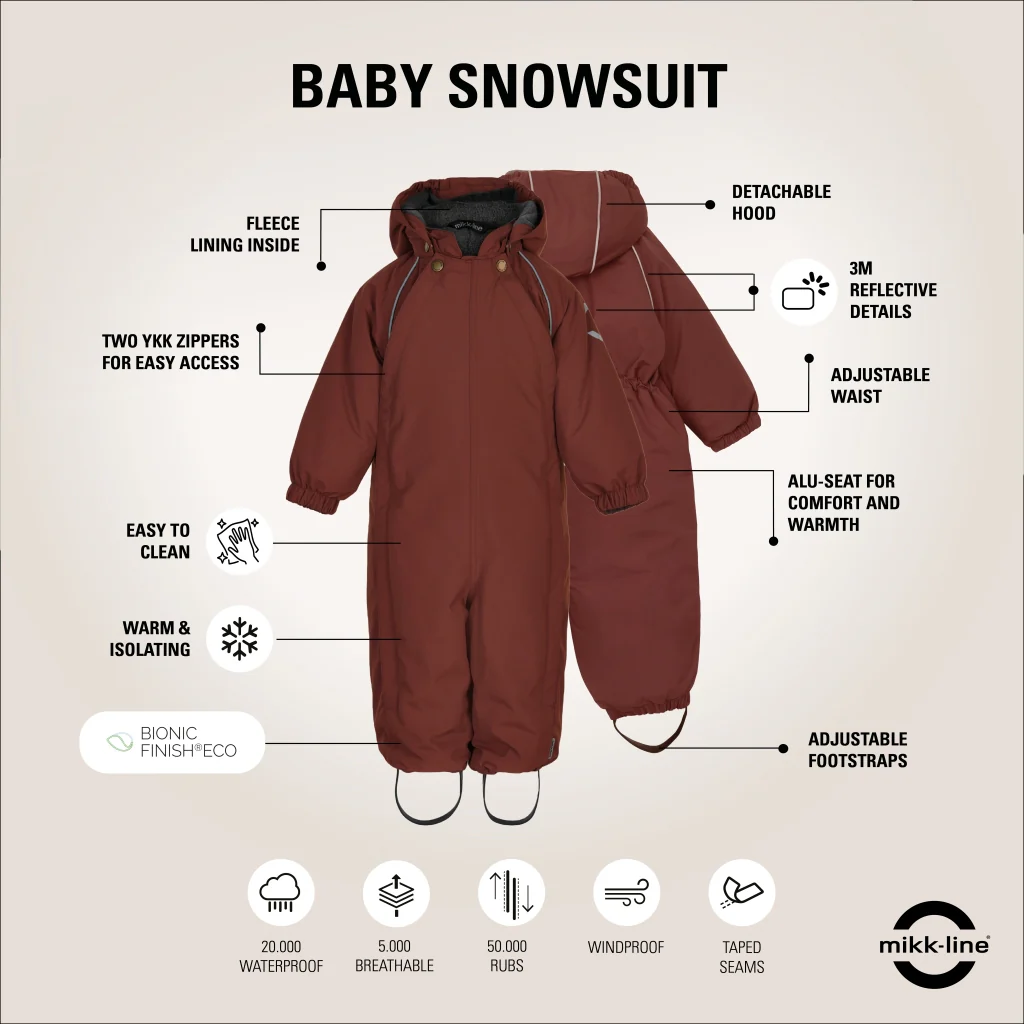 – Vindtæt og isolerende med blød fleeceforing, der holder barnet varmt og beskyttet mod vinden.