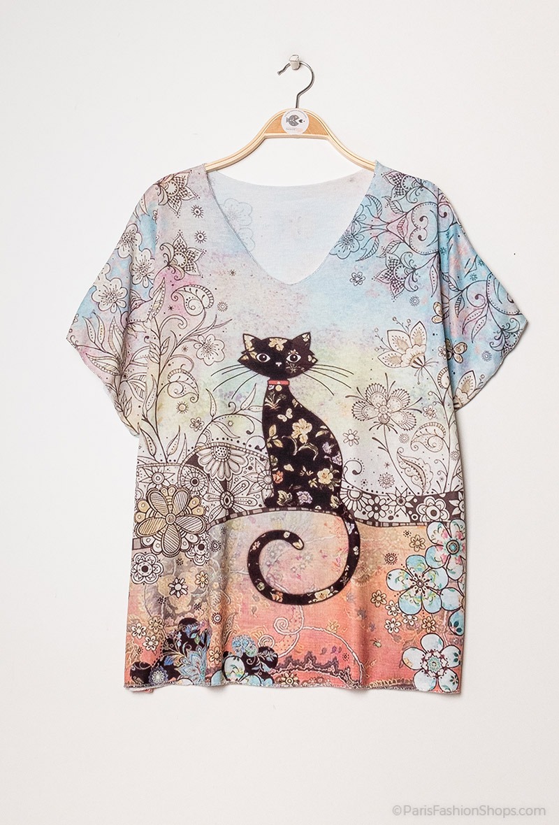 Dejlig blød og løstsiddende bluse med fine motiver. Farve : Multi. Fremstillet i 95% bomuld, 5% elastan.
