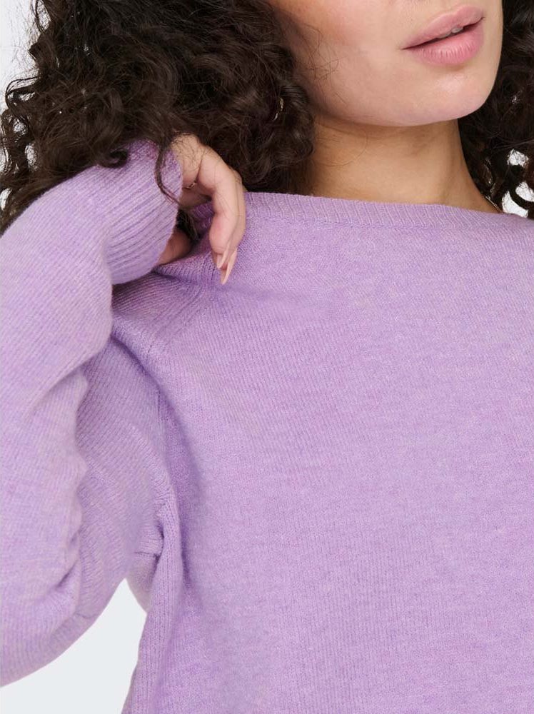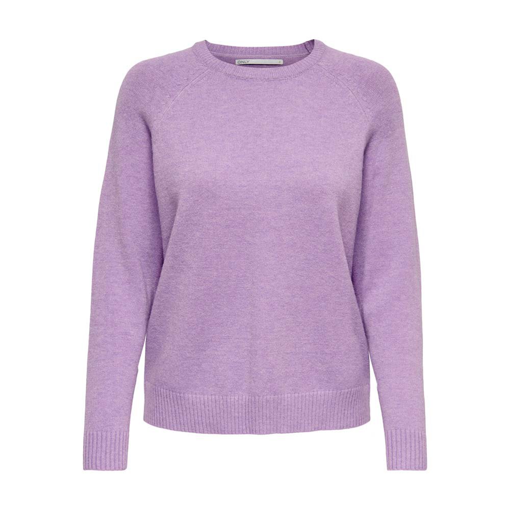 Fin langærmet strik pullover fra Only i dejlig let og strækbar kvalitet. Med rund hals og ribkanter. Farve : Dewberry Melange. Fremstillet i 50% viskose, 27% nylon, 23% polyester.