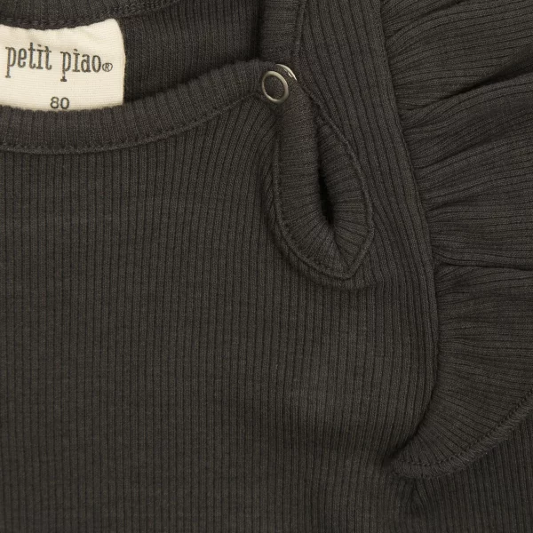 Sød flæse kjole med lange ærmer fra Petit Piao. Farve : Raven. Fremstillet i 48% økologisk bomuld, 48% modal, 4% elastan.