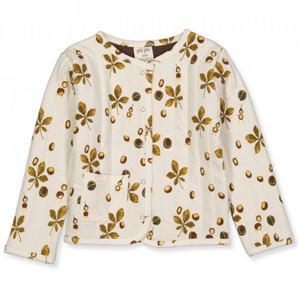 Super skøn quiltet jakke / cardigan fra danske Petit Piao, med et skønt print. Cardiganen åbnes/lukkes foran med trykknapper og har en lille åben lomme i venstre side. Fremstillet i 48% økologisk bomuld, 48% modal, 4% elastan. Farve : Chesnut/French Roast.