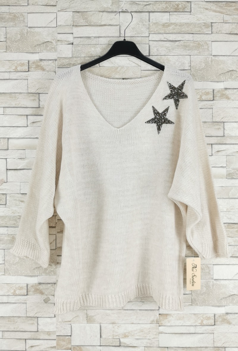 Super fin og let strik i smart sommerfarve og med flot stjernemotiv. Farve : Beige. Fremstillet i 85% acryl, 15% polyamid.
