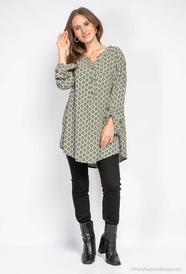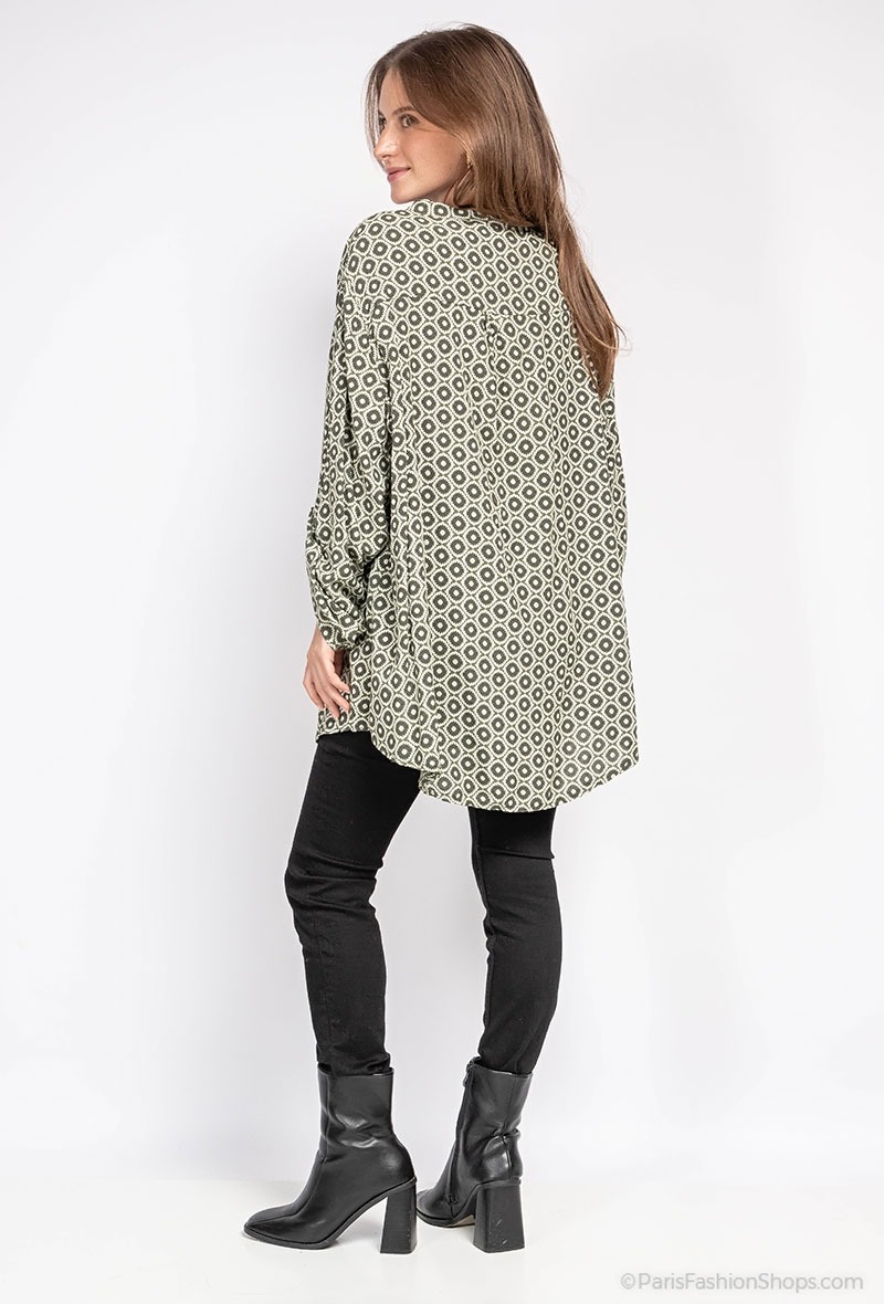 Smuk skjorte med fint mønster. Farve : Khaki. Fremstillet i 95% bomuld, 5% elastan.