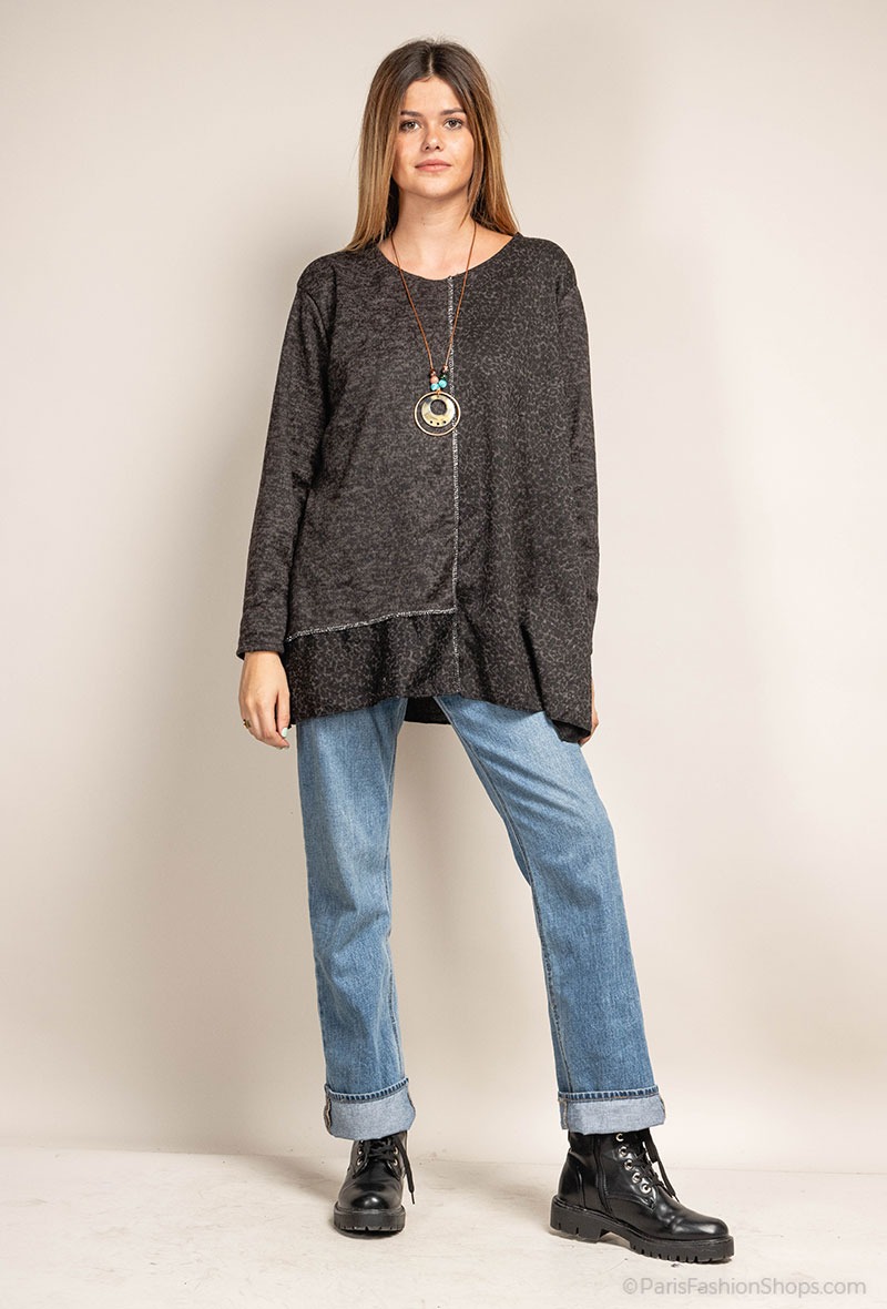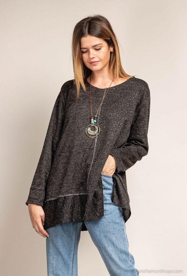 Smart bluse med tilhørende halskæde. Farve : Black Melange. Fremstillet i 95% Viscose, 5% Elastan.