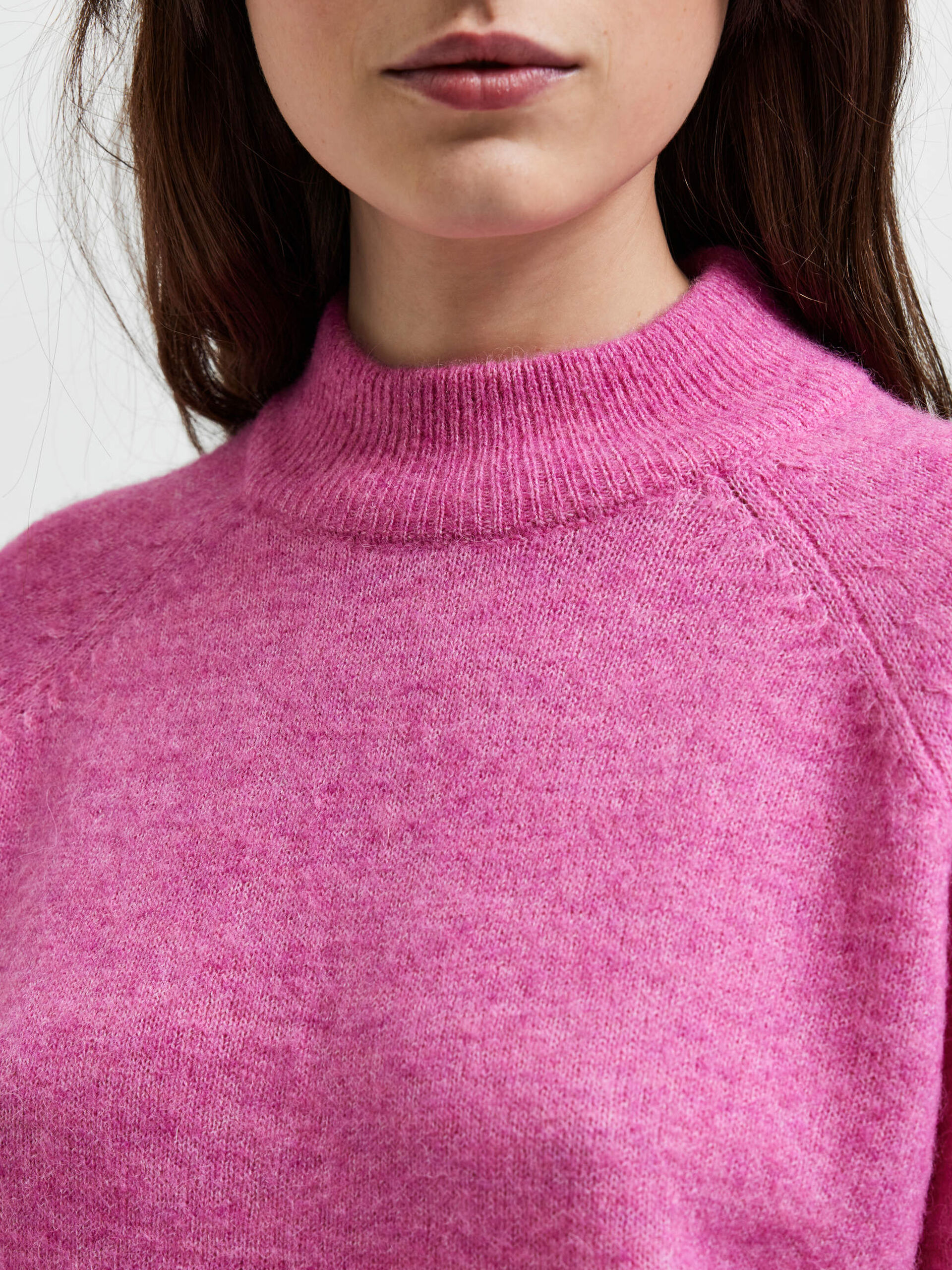 Flot strik fra Selected Femme i lækker alpakablanding. Med høj hals og lange ærmer med fine ribbede kanter. Farve : Phlox Pink. Fremstillet i 39% Uld, 24% Polyester, 20% Alpaka, 15% Nylon, 2% Elastan.