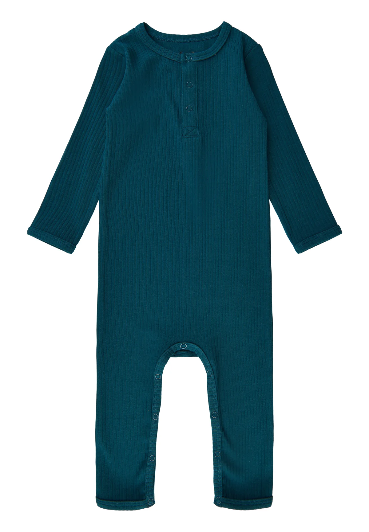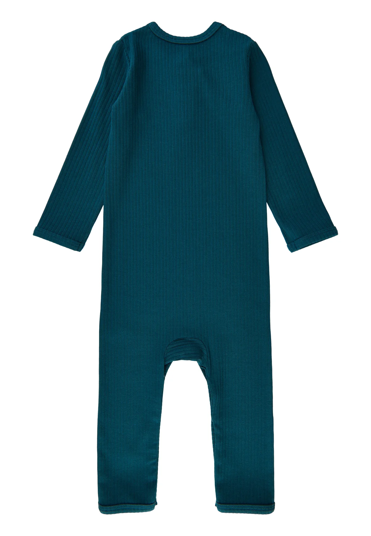 SGKao er en lækker langærmet heldragt med et bredt ribmønster. Heldragten er simpel men elegant, og så er den lavet i en meget blød kvalitet med stræk, som gør den yderst behagelig for dit barn. Heldragten har trykknapper imellem benene, samt to trykknapper fra kraven og ned på brystet. Det er en meget fin baby heldragt, der både kan anvendes som hverdagstøj til leg uden hæmninger, eller som en behagelig natdragt.