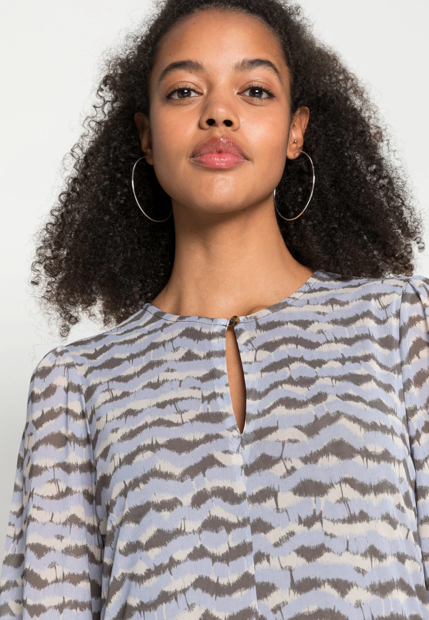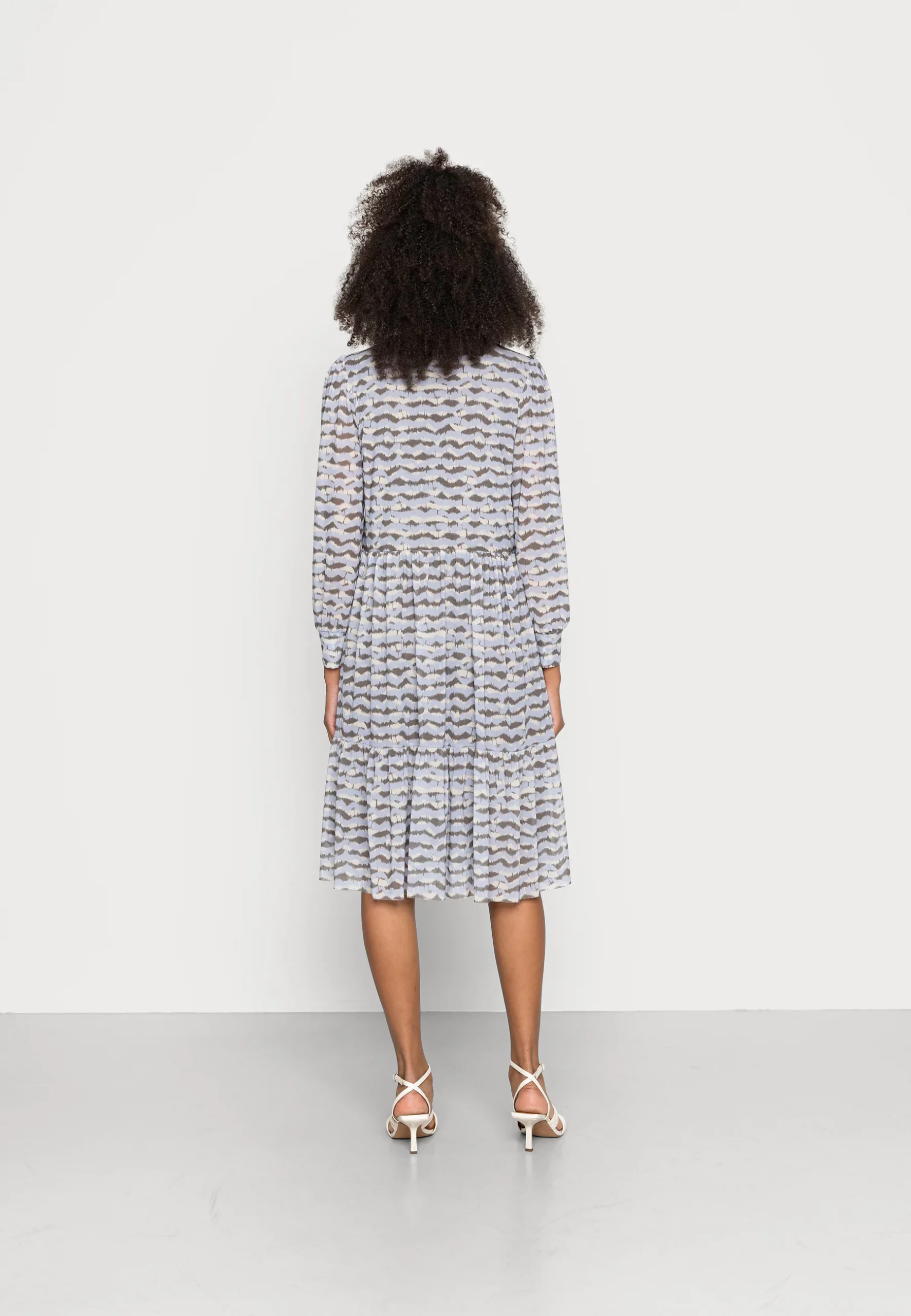 Flot langærmet kjole fra Soaked. Rund halsudskæring med knapluk fortil. Regular fit, knælang. Farve : Cosmis Sky. Fremstillet i 95% polyester, 5% elastan.