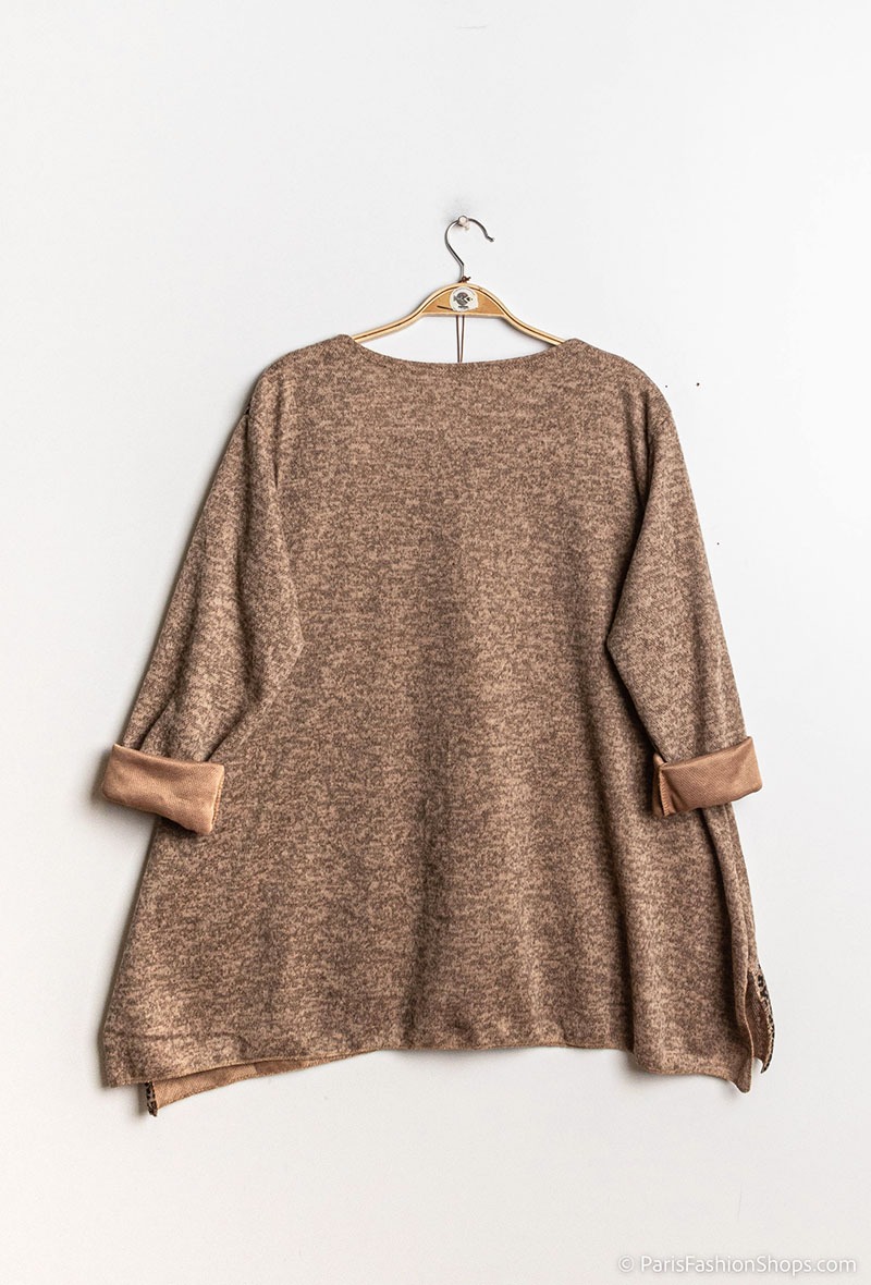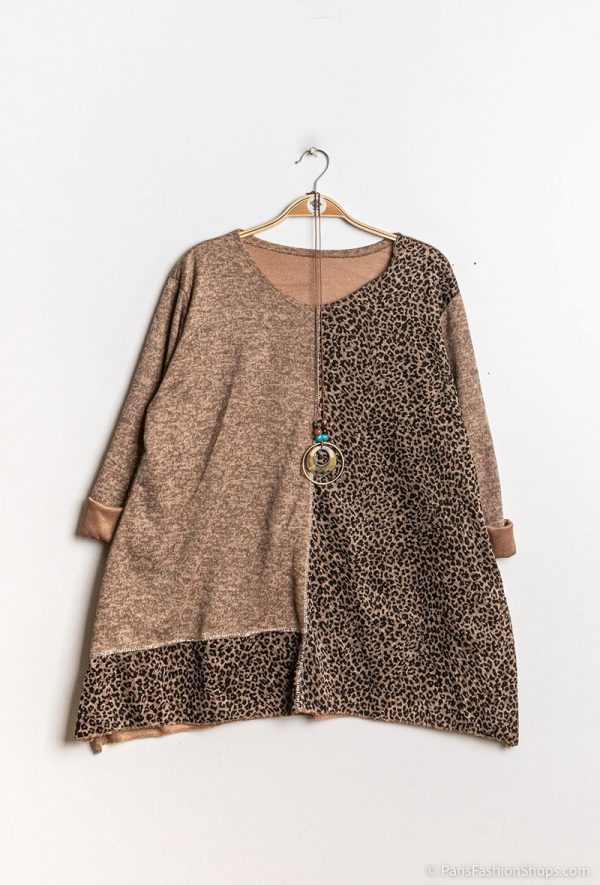 Smart og løstsiddende sweater i dejlig blød kvalitet. Med fint mønster og medfølgende halskæde. Farve : Camel. Fremstillet i 95% viscose, 5% elastan.