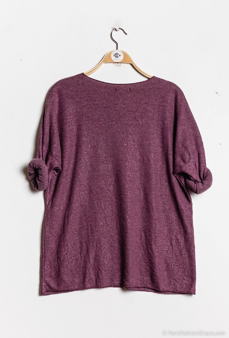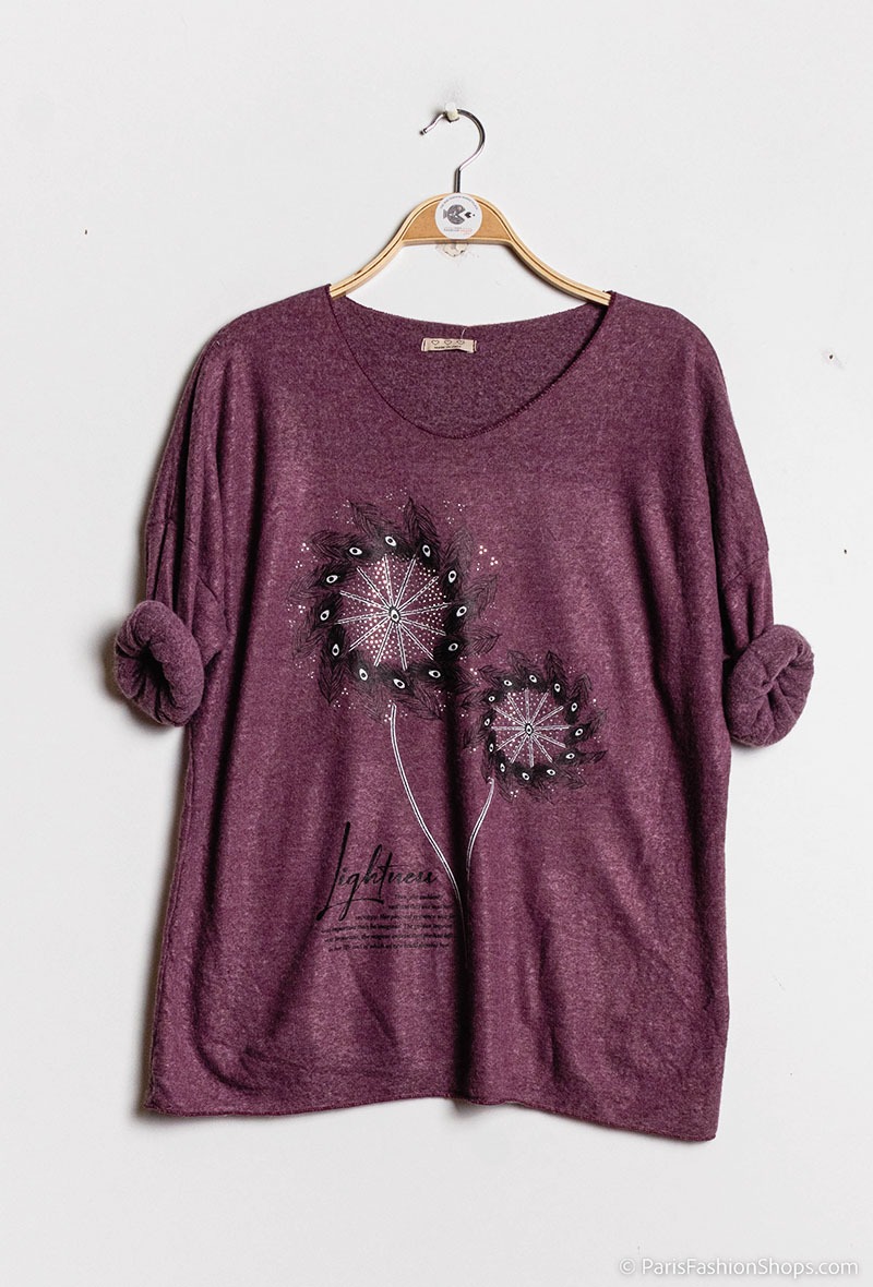Smart og løstsiddende sweater i dejlig blød kvalitet. Med fine motiver. Farve : Dark Burgundy. Fremstillet i 40% viscose, 30% uld, 30% polyamid.