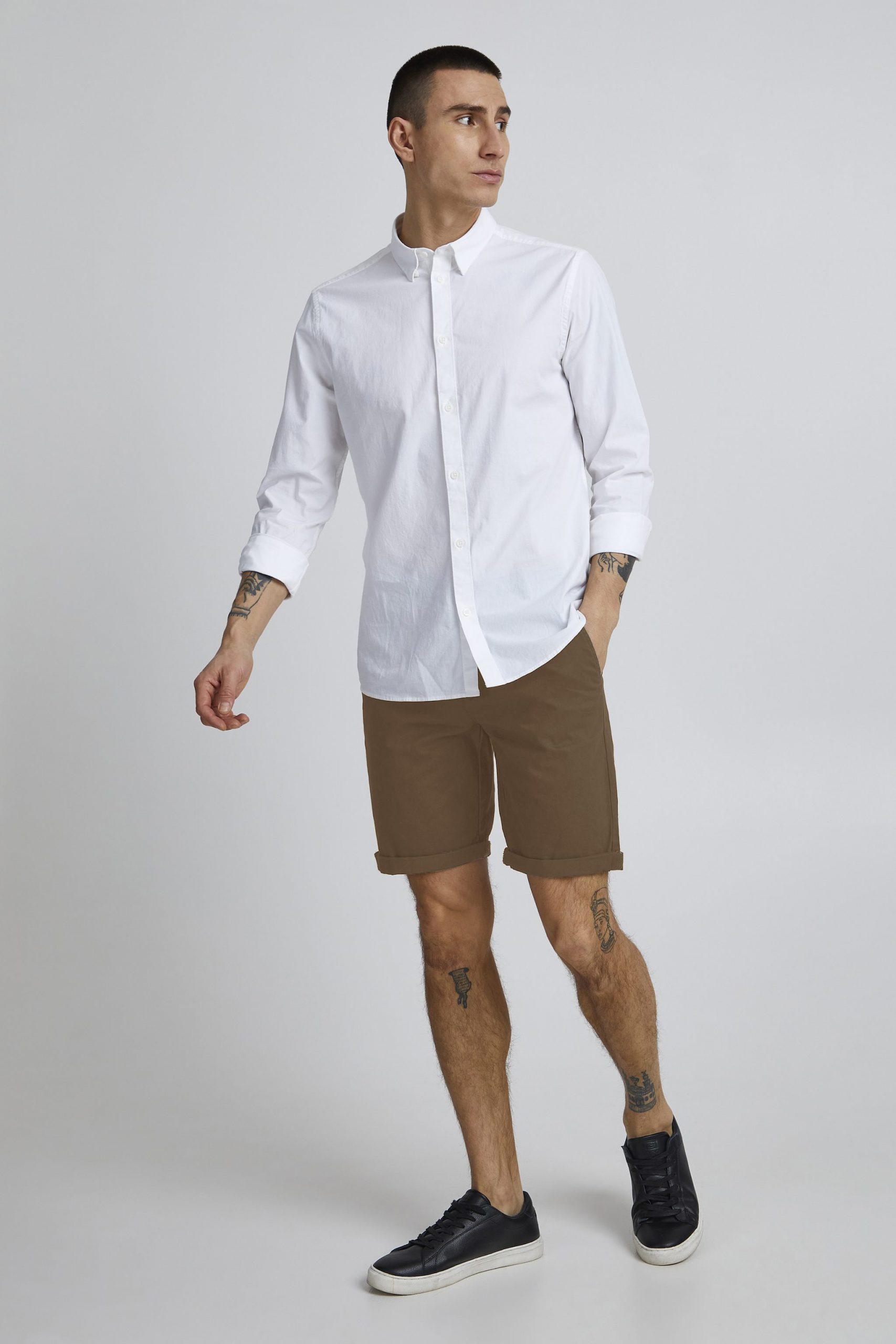 Smarte casual short i dejlig blød bomuldskvalitet. Regular fit. Farve: Shitake. Fremstillet i 98% bomuld, 2% elastan.