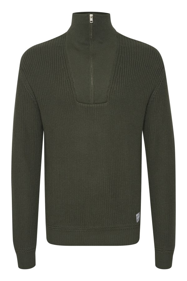 Lækker strik med lynlås fra Solid. Farve : Thyme. Fremstillet i 50% bomuld, 50% acryl.