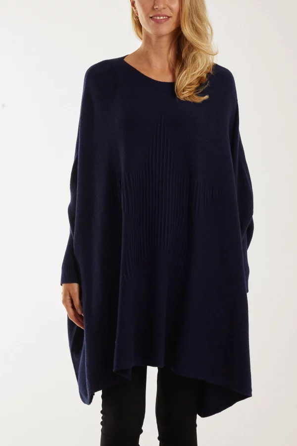 Lækker poncho med fint motiv fortil. Perfekt til efteråret. Farve : Navy. Fremstillet i 50% viscose, 28% polyamid, 22% modal.