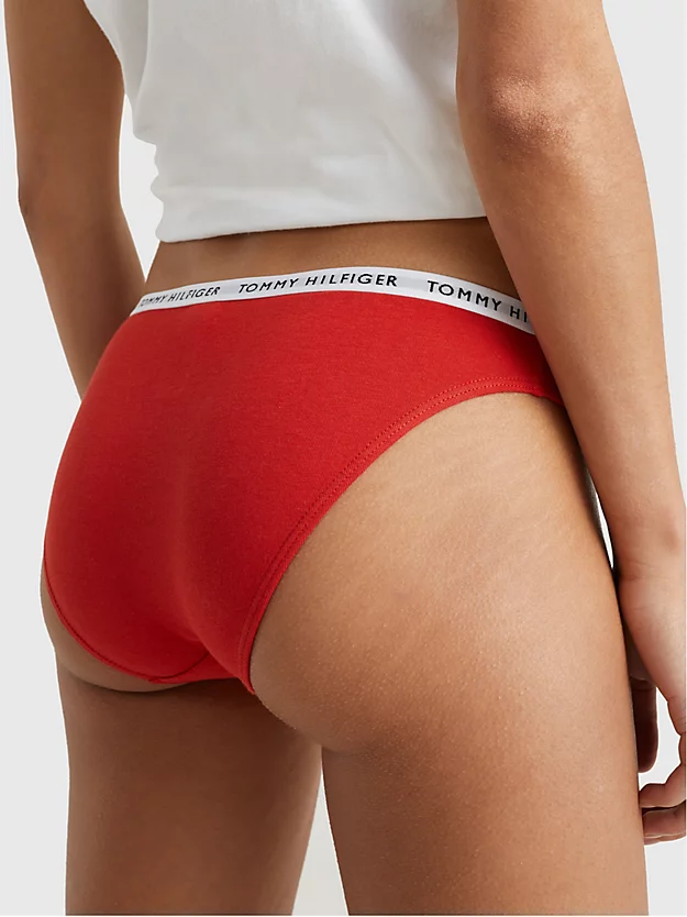 Super populær 3-pak bikini trusser fra Tommy Hilfiger. I lækker kvalitet med stretch for perfekt pasform. Klassisk model med logo broderet på kanten. Farve : Feather White/Copper Canyon/Empire. Fremstillet i 95% bomuld, 5% elastan.