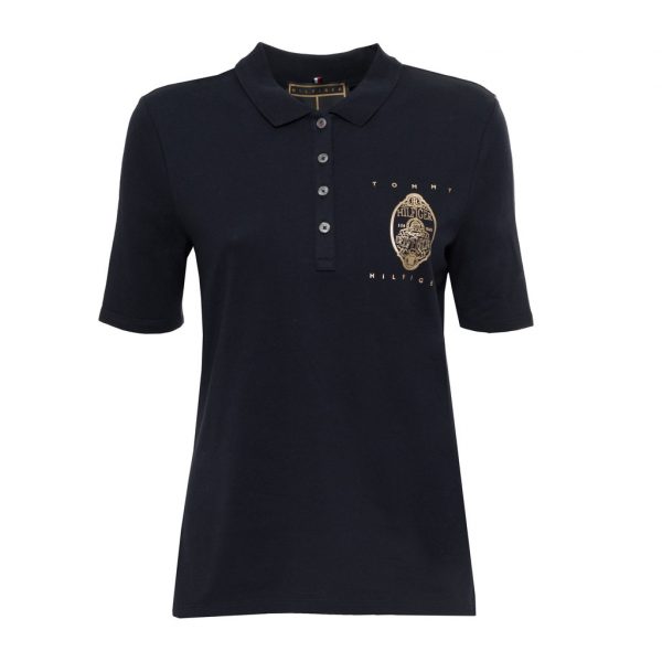 Stilfuld Hilfiger dame polo med logo foran.