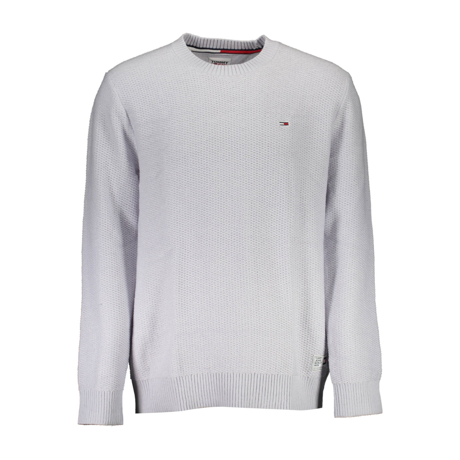 Lækker klassisk strik fra Tommy Jeans, med rund hals og logo på brystet. Farve : Silver Grey. Fremstillet i 100% bomuld.