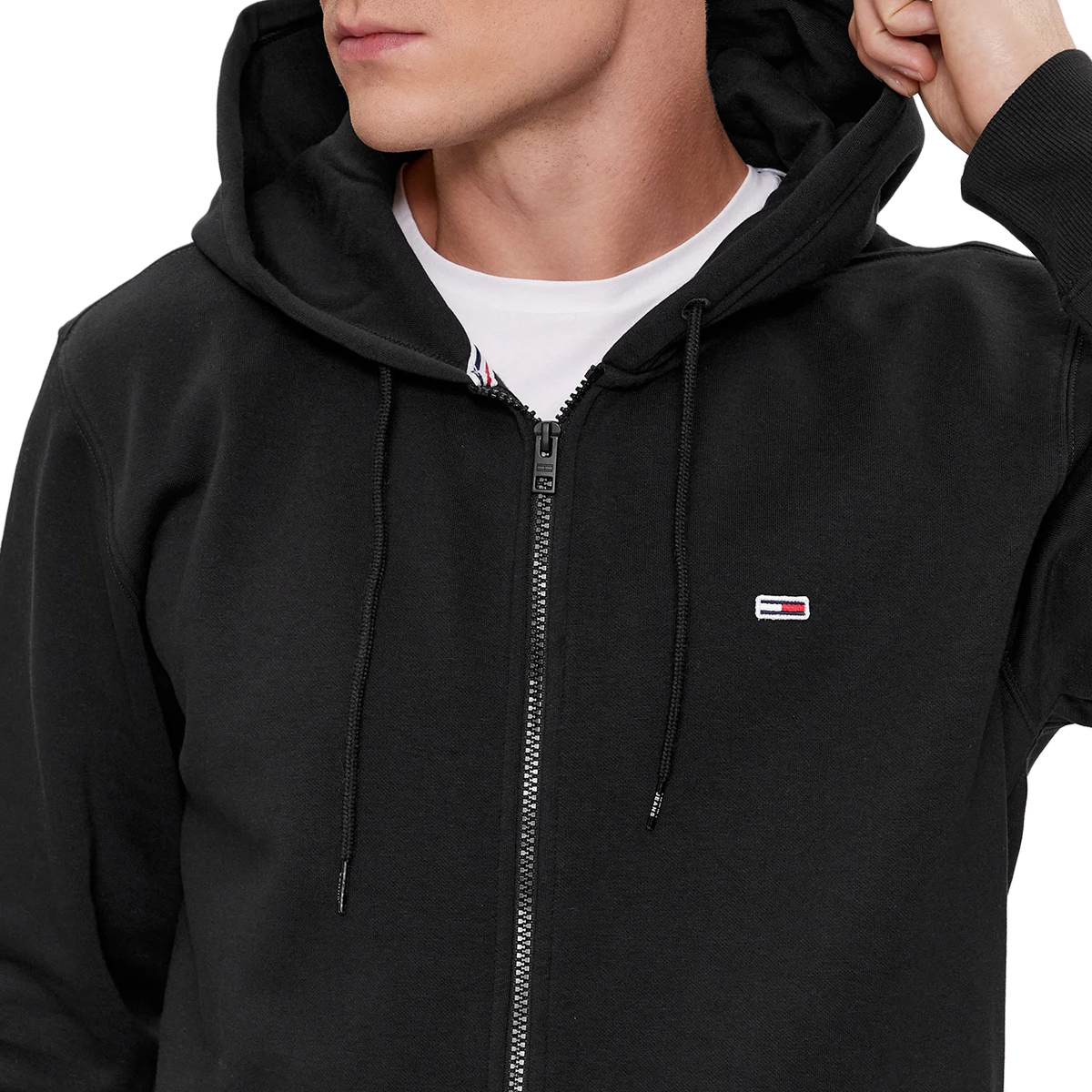 Smart hættetrøje fra Tommy Jeans, med lynlås og lommer fortil. Logo på brystet. Farve: Black. Fremstillet i 55% bomuld, 45% polyester.