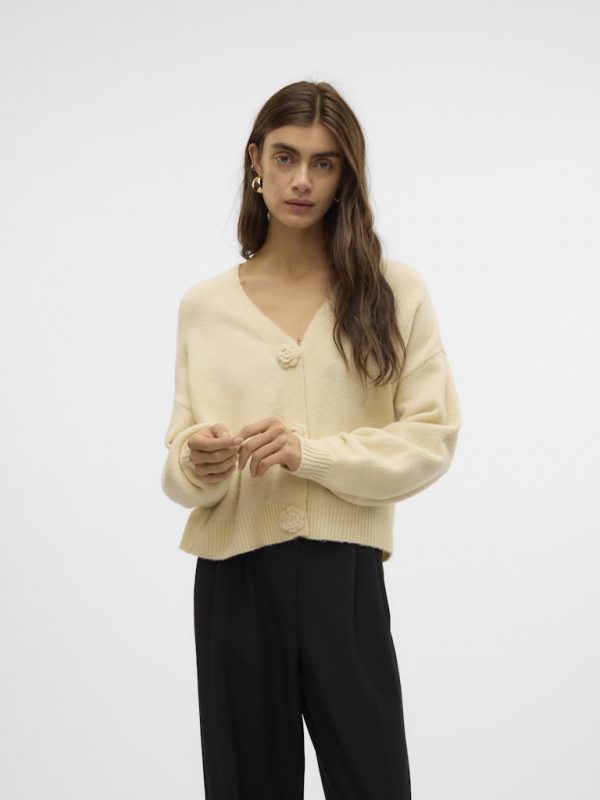 Brug den som et sødt ekstra lag eller en chik strikket jakke. Denne tunge strikkede cardigan er den perfekte tilføjelse til din garderobe. Den er en nem og behagelig stil, der holder dig behagelig og varm. Brug den som et ekstra lag til dit allerede smarte outfit, eller skru lidt ned for dit fine look ved at føje en smule komfort til det. Fremstillet i 65% Genanvendt polyester, 28% Akryl, 5% Uld, 2% Elastan