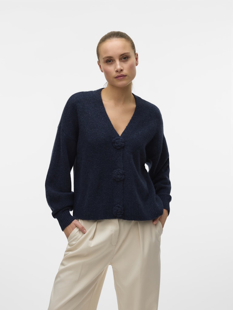 Brug den som et sødt ekstra lag eller en chik strikket jakke. Denne tunge strikkede cardigan er den perfekte tilføjelse til din garderobe. Den er en nem og behagelig stil, der holder dig behagelig og varm. Brug den som et ekstra lag til dit allerede smarte outfit, eller skru lidt ned for dit fine look ved at føje en smule komfort til det. Fremstillet i 65% Genanvendt polyester, 28% Akryl, 5% Uld, 2% Elastan