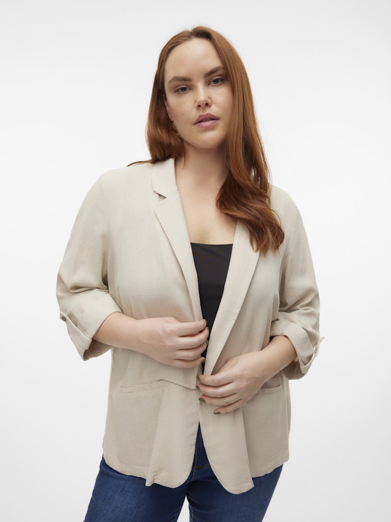 4 for 3Er du i tvivl om, hvad du skal tage på? Vælg denne blazer, som er et stilrigtigt valg. Denne blazer er en stilrigtig favorit. Ligegyldigt om du har den på over en simpel T-shirt, vil blazeren altid give looket sin egen sofistikerede stil og elegance. Brug den med jeans med vide ben og højhælede sko for at få et flot hverdagslook.. Curve er designet til at passe den kurvede kvinde. Fremstillet i 55% LENZING™ ECOVERO™ Viskose, 45% Hør