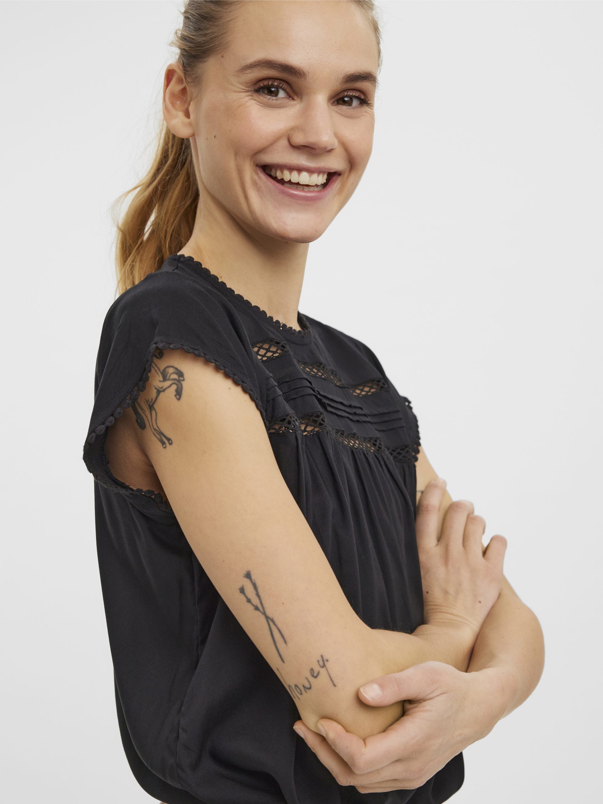 Ærmeløse toppe er gode til at skabe et festligt look, på en solrig ferie og til mange andre lejligheder. Denne skønne top kan nemt løfte ethvert look med sine fine detaljer og alsidighed. Vil du have et mere sofistikeret look? Brug den med højtaljede bukser og højhælede sandaler.