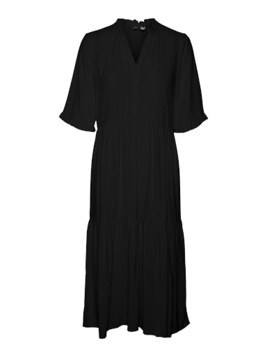 Denne kjole er det perfekte valg til de dage, hvor det virker umuligt at sætte et outfit sammen. Kombinationen af komfort og stil gør denne kjole til en perfekt hverdags-go-to. Gør den finere eller mere afslapper afhængigt af din smag. Fremstillet i 100% Viskose – Livaeco by Birla Cellulose™