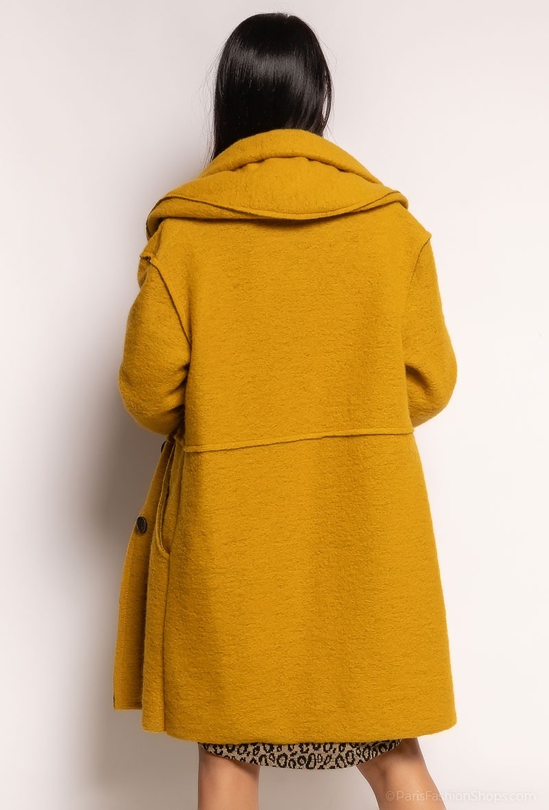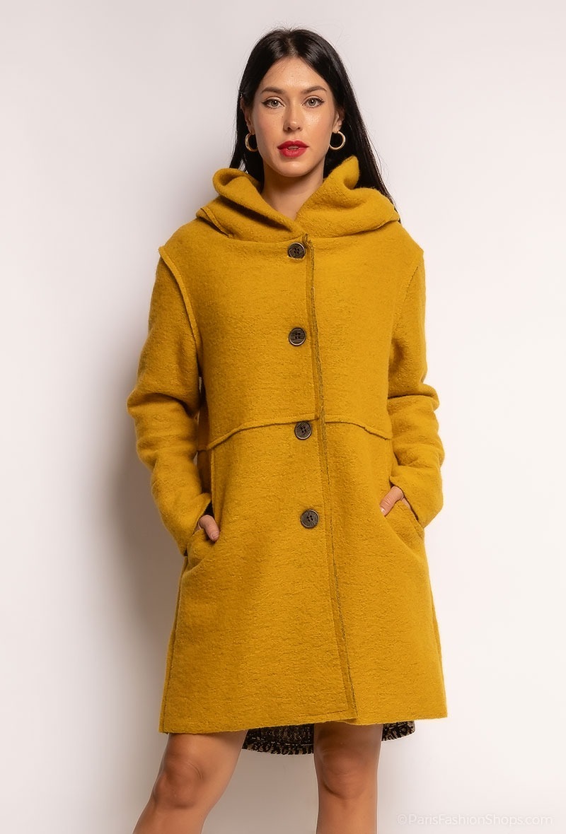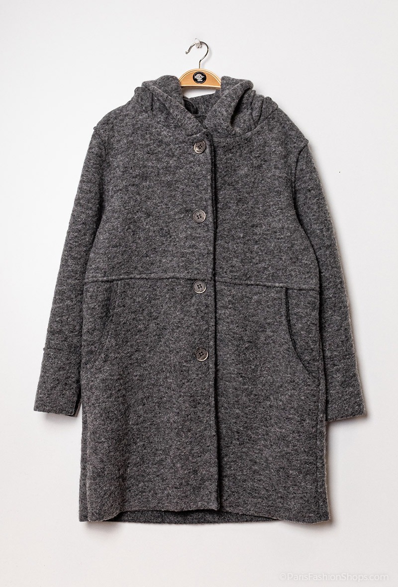 Flot uld frakke med hætte og knapluk. Farve : Grey Melange. Fremstillet i 70% uld, 30% polyester.